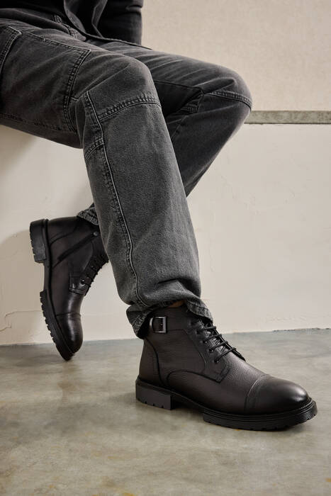 Hakiki Deri Erkek Bot Siyah