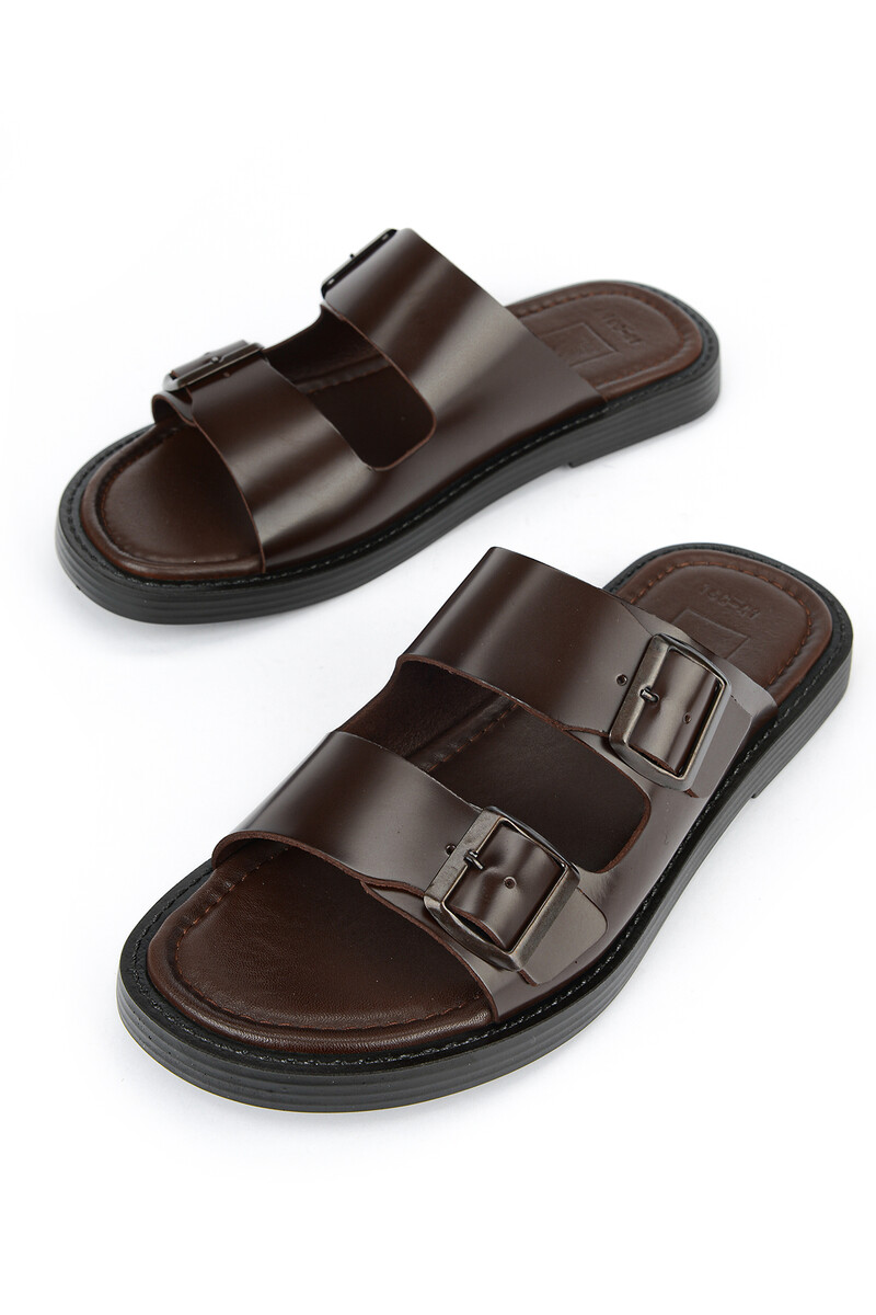 Hakiki Deri Erkek Terlik Kahverengi