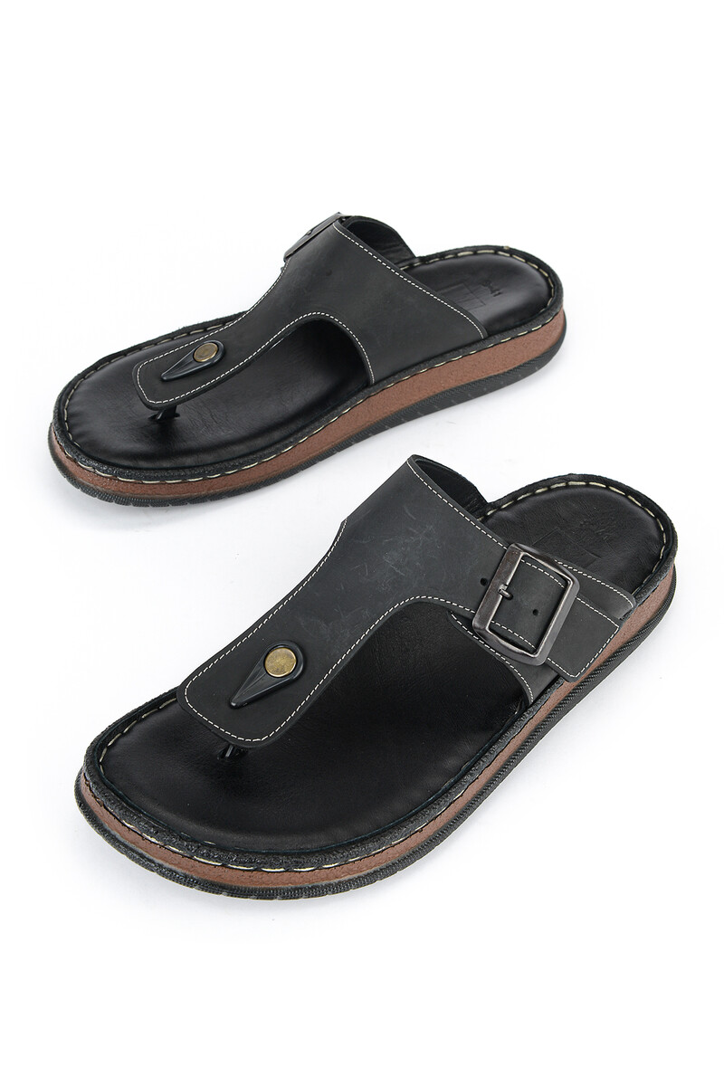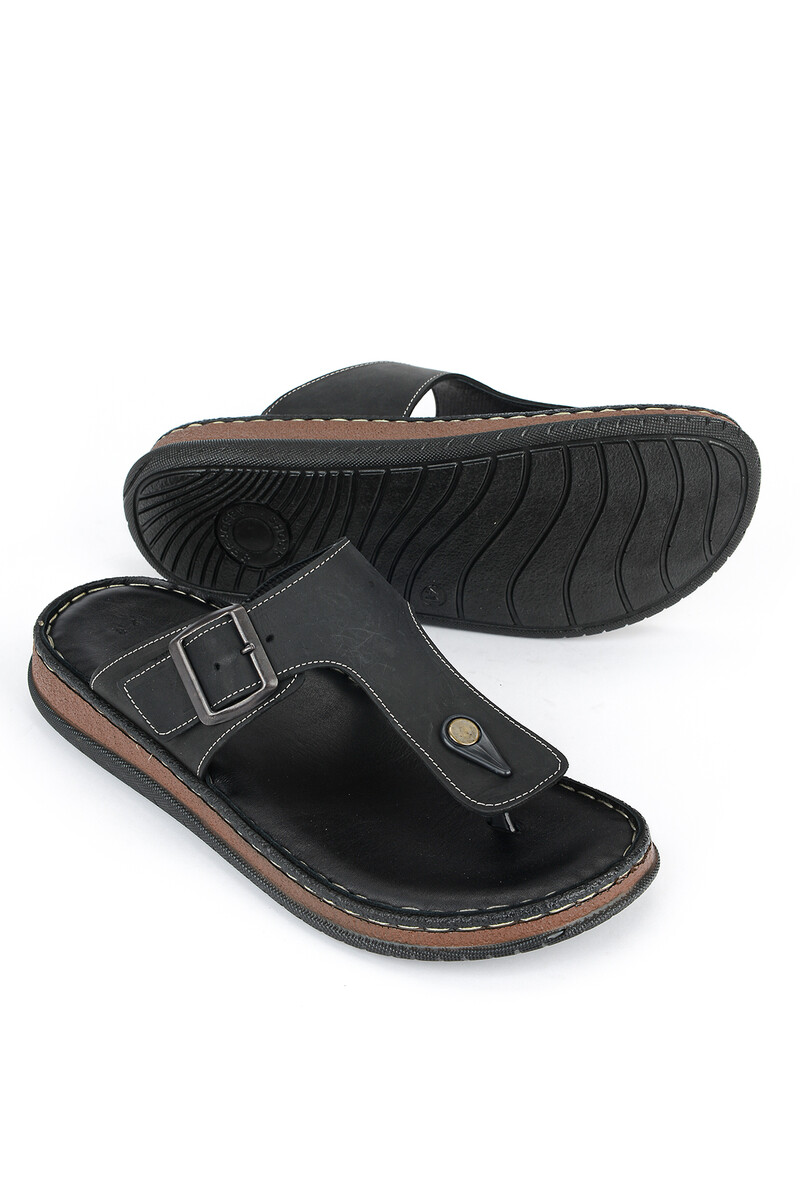 Hakiki Deri Erkek Terlik Siyah