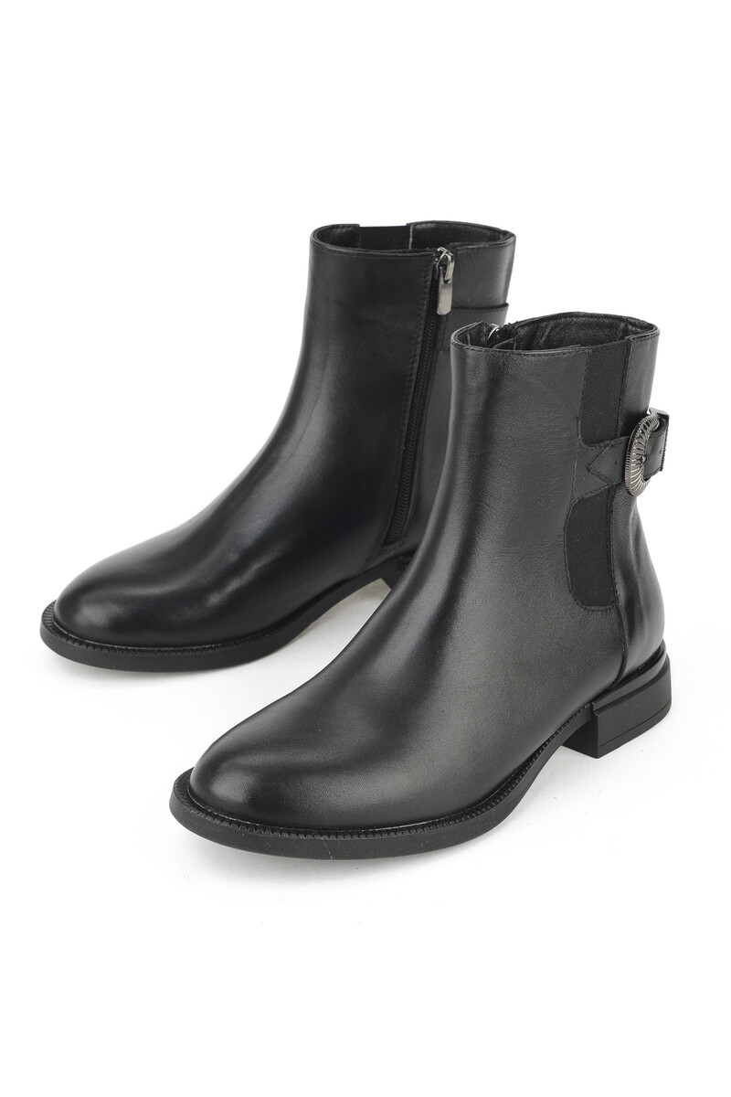 Hakiki Deri Kadın Bot Siyah