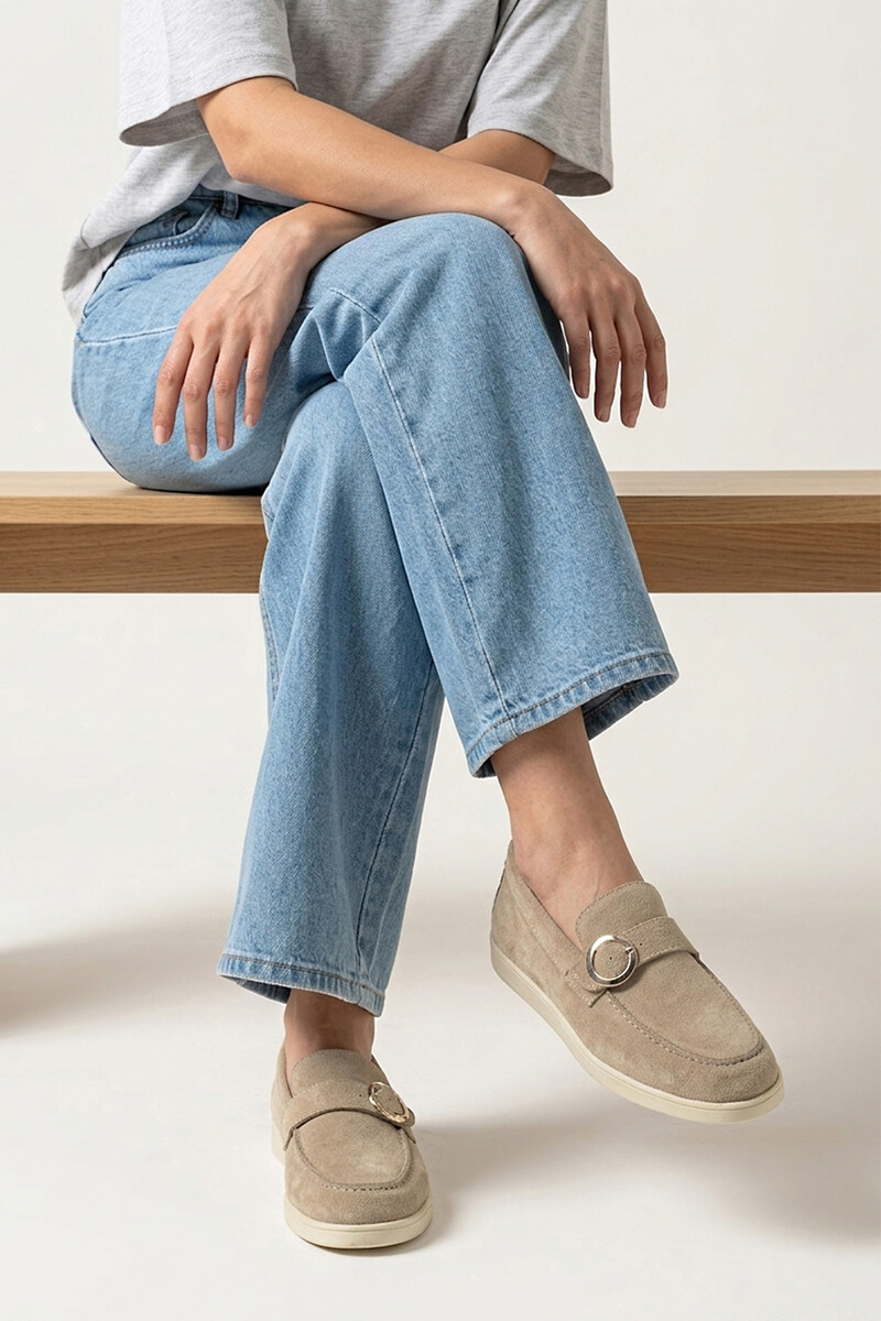 Hakiki Deri Kadın Günlük Ayakkabı Bej