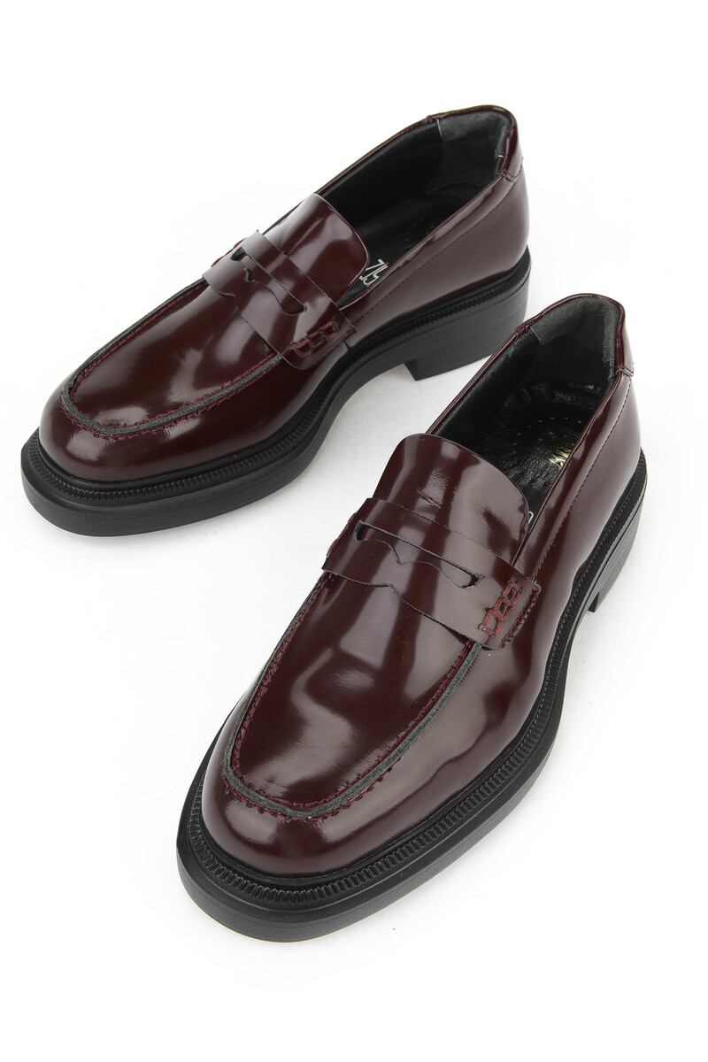 Hakiki Deri Kadın Günlük Ayakkabı Bordo