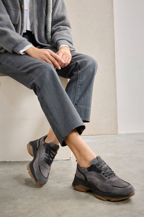 Hakiki Deri Kadın Günlük Ayakkabı Gri