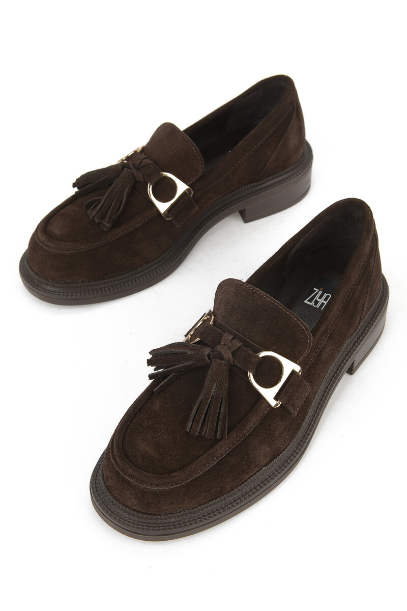 Hakiki Deri Kadın Günlük Ayakkabı Kahverengi