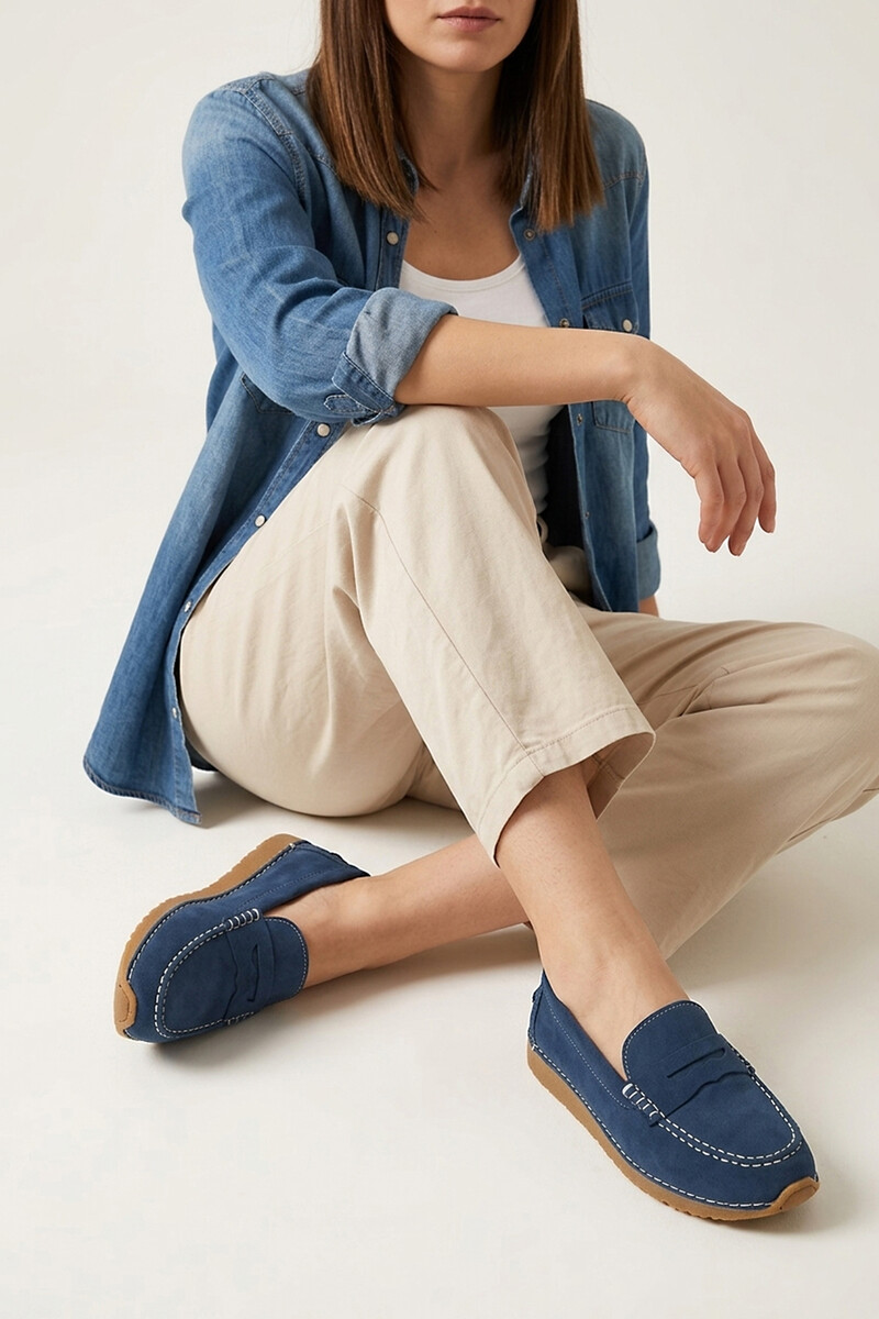 Hakiki Deri Kadın Günlük Ayakkabı Mavi