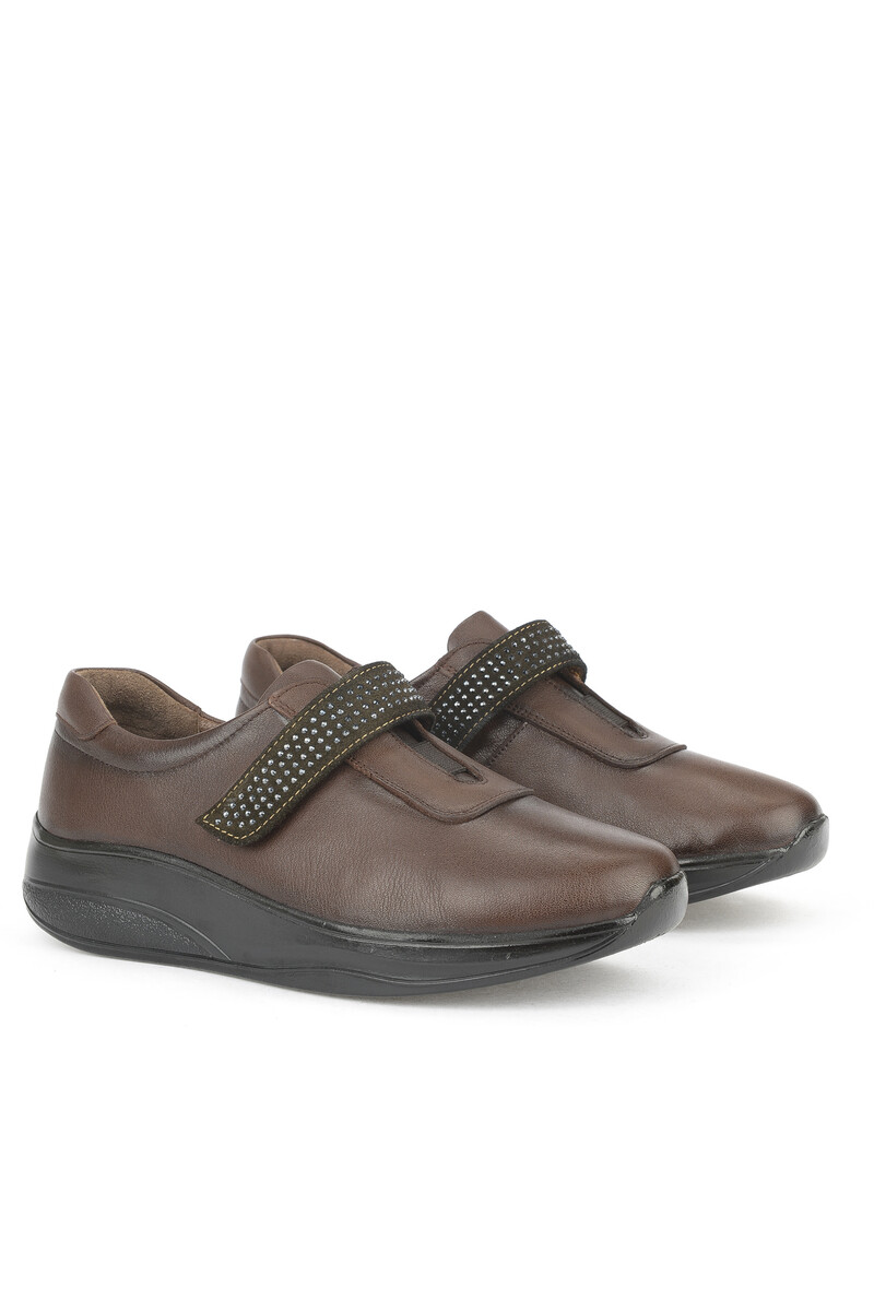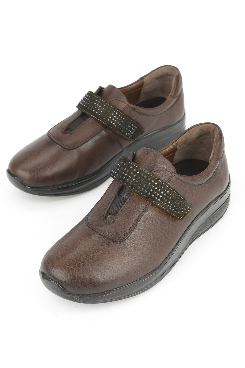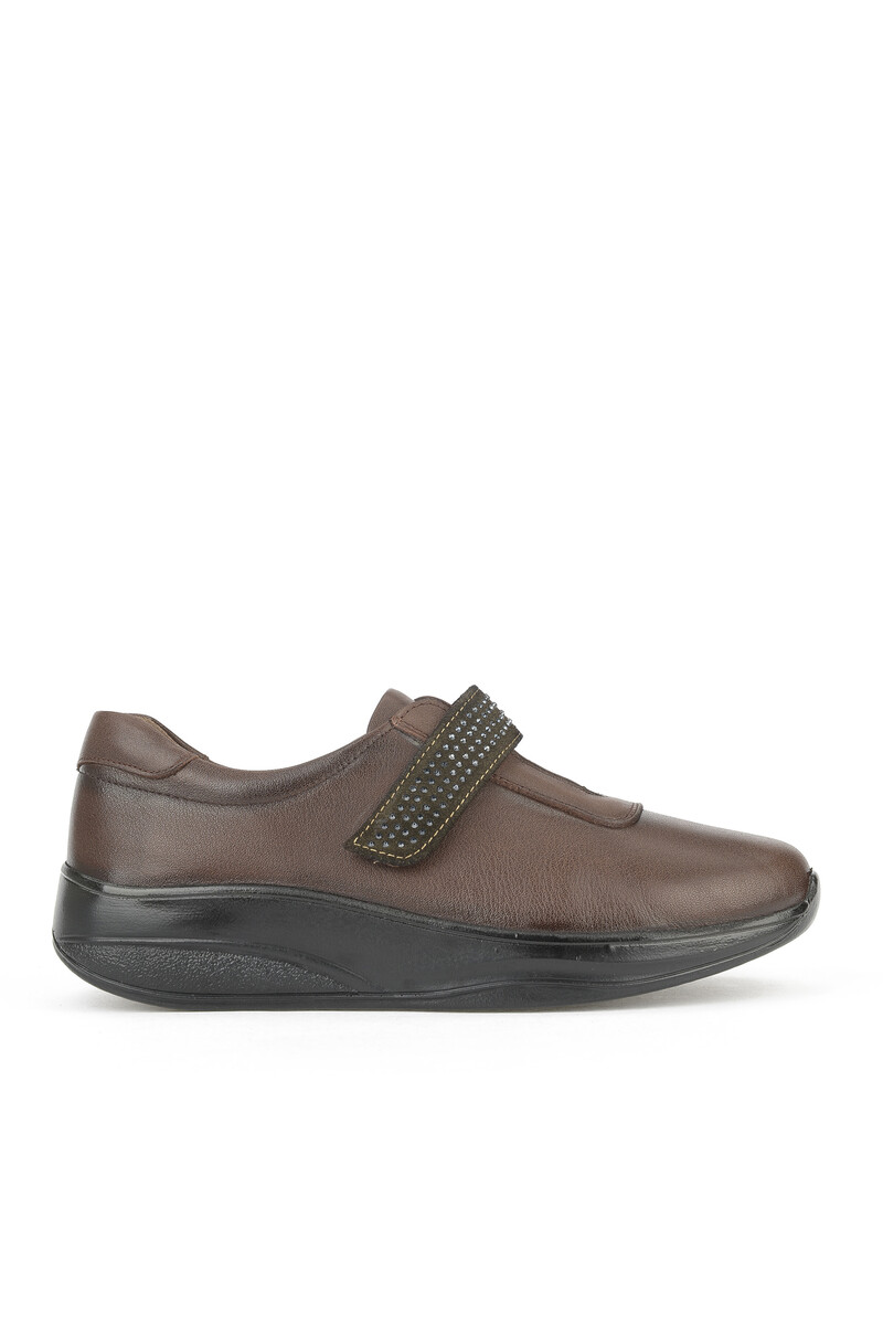 Hakiki Deri Kadın Konfor Ayakkabı Kahverengi