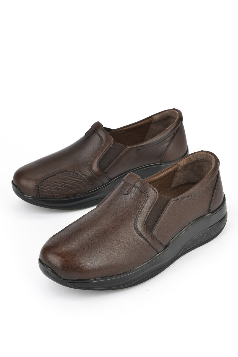 Hakiki Deri Kadın Konfor Ayakkabı Kahverengi