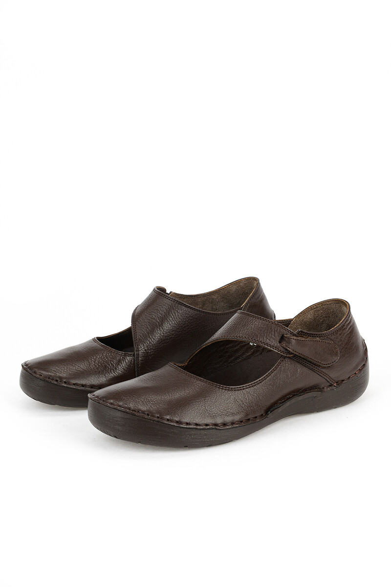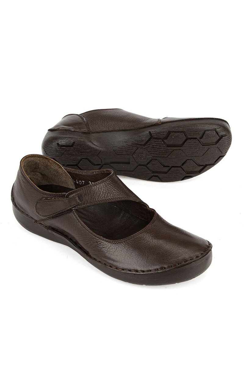 Hakiki Deri Kadın Konfor Ayakkabı Kahverengi