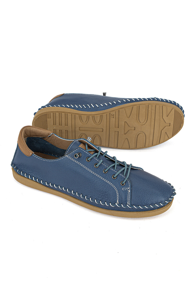 Hakiki Deri Kadın Günlük Ayakkabı Mavi