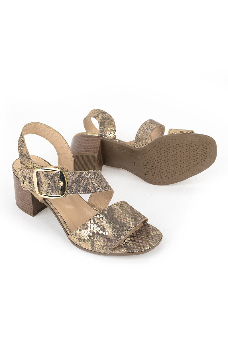 Hakiki Deri Kadın Sandalet Altın