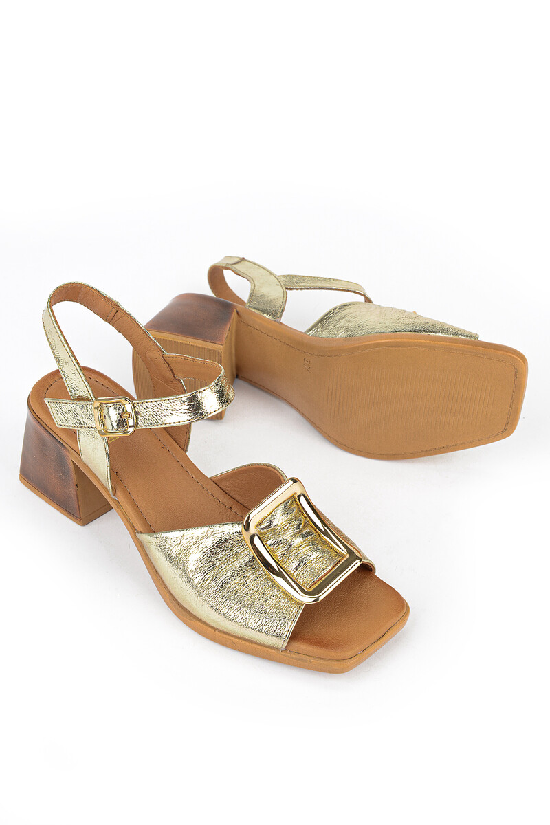 Hakiki Deri Kadın Sandalet Altın