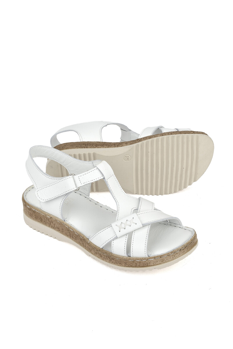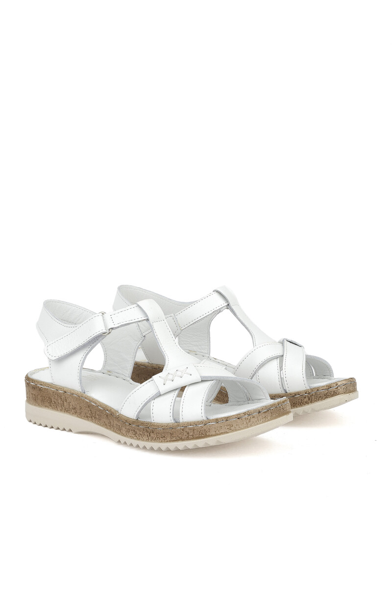 Hakiki Deri Kadın Sandalet Beyaz