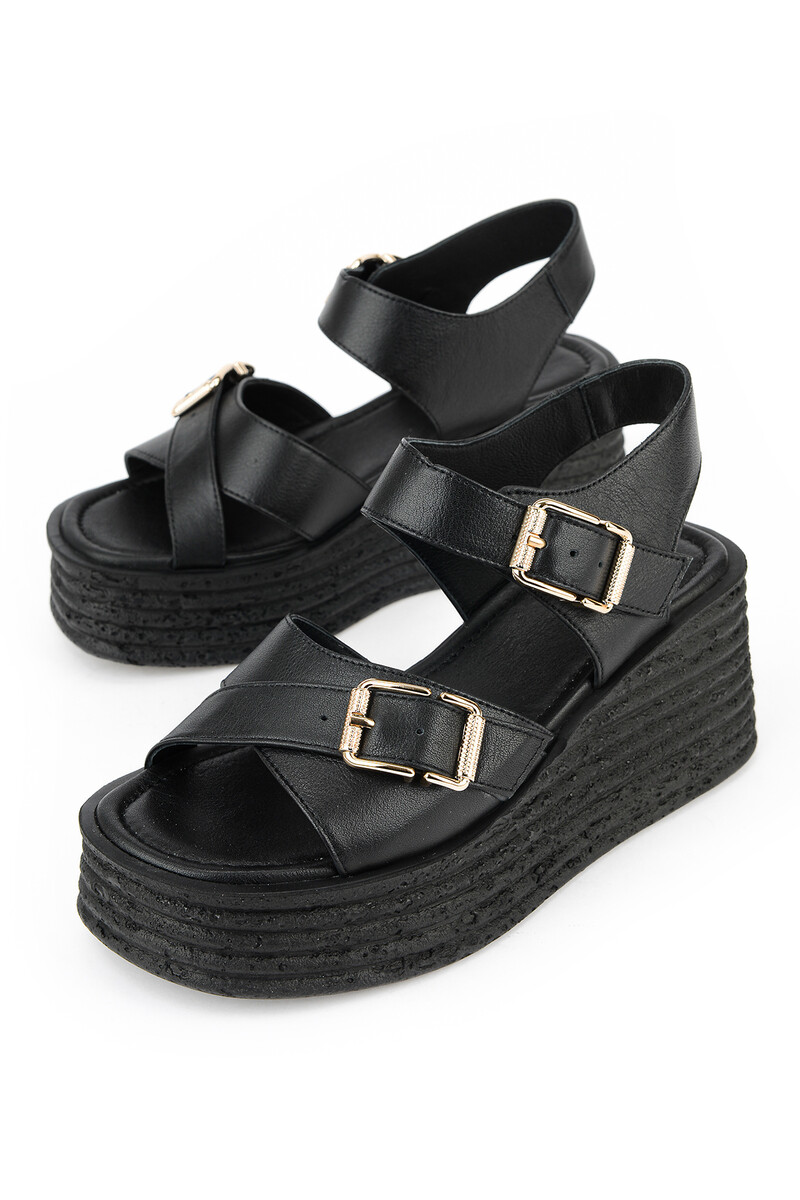 Hakiki Deri Kadın Sandalet Siyah