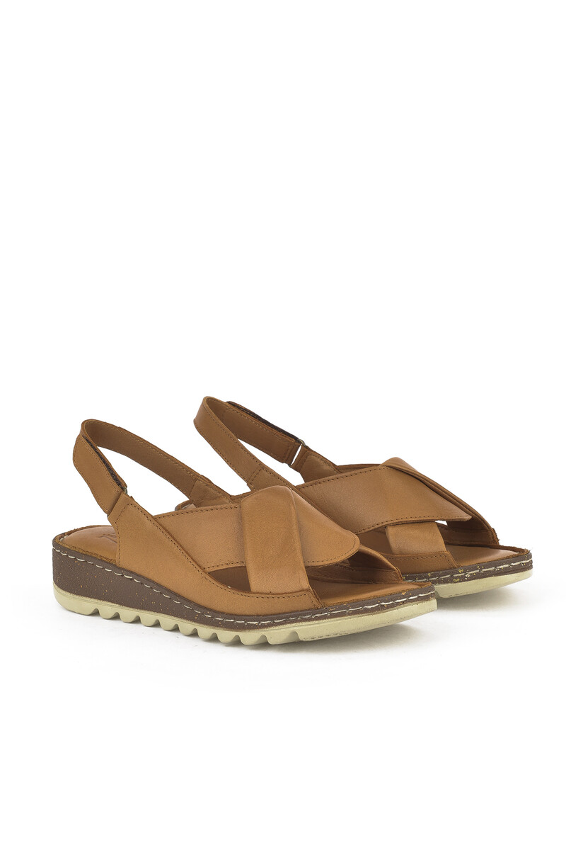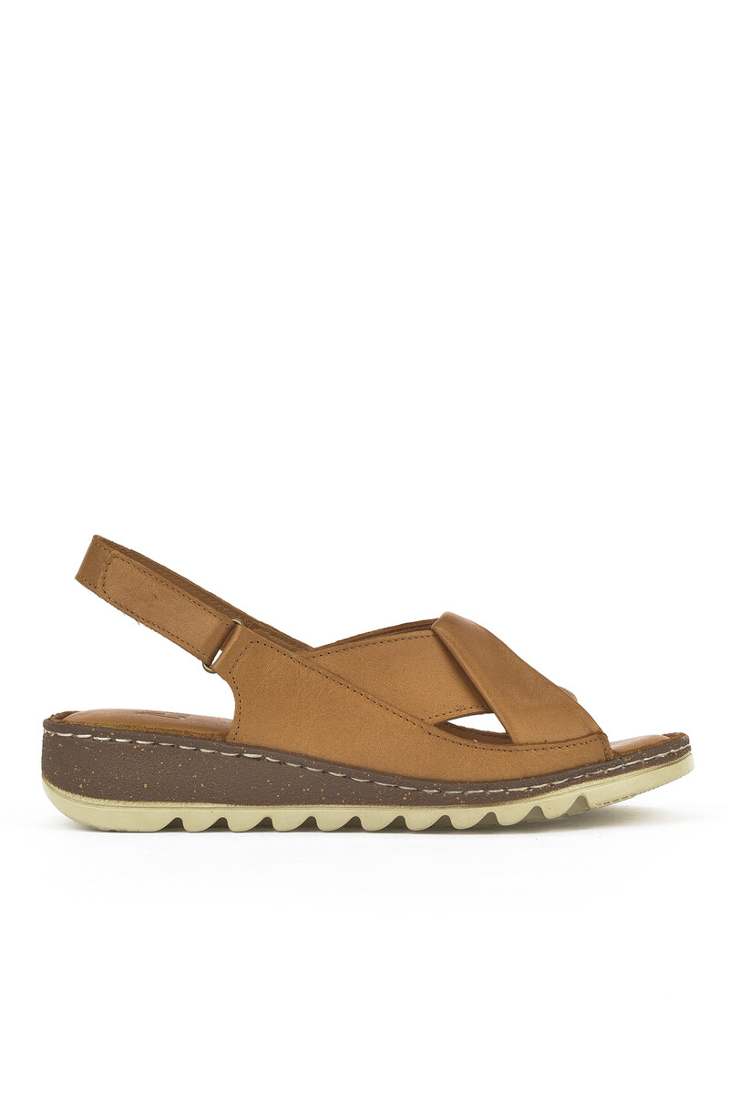 Hakiki Deri Kadın Sandalet Taba