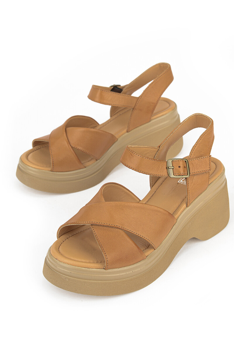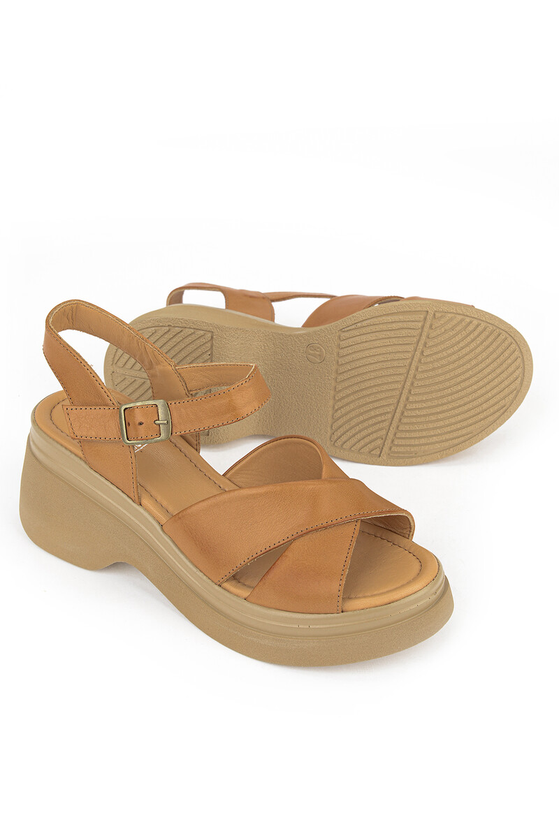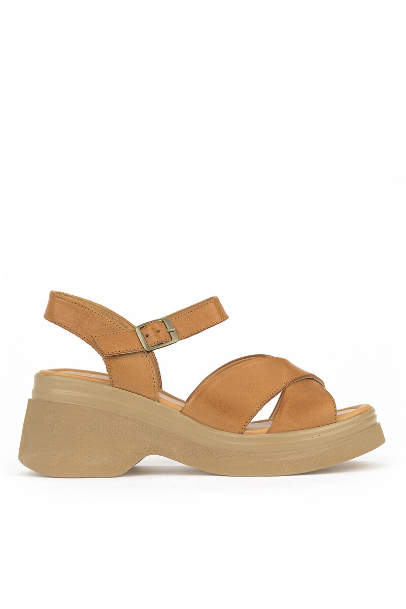Hakiki Deri Kadın Sandalet Taba
