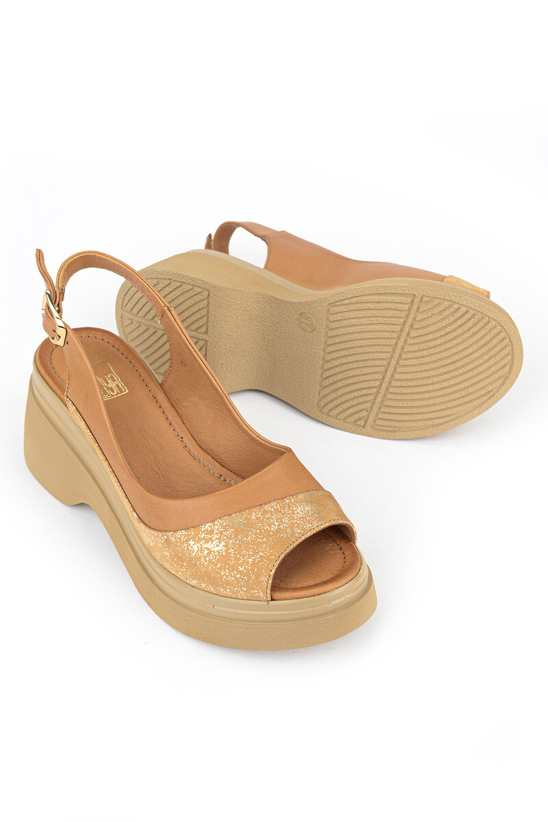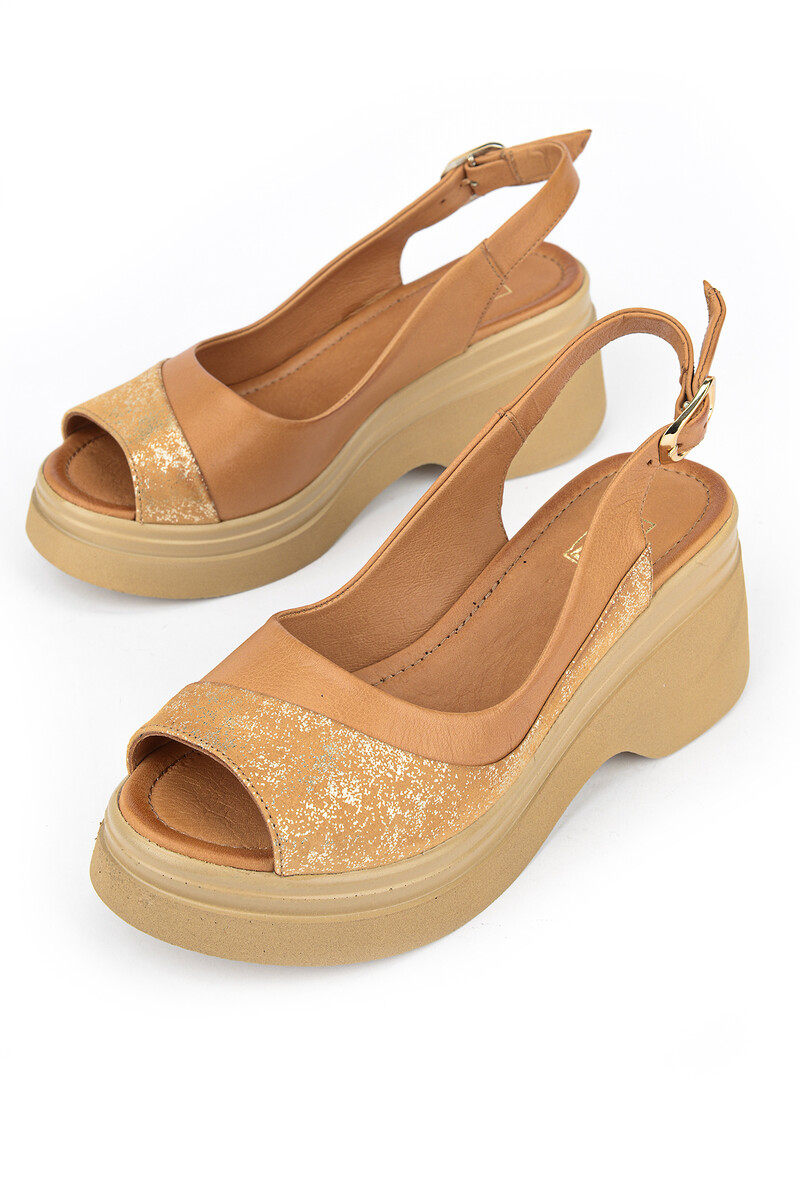 Hakiki Deri Kadın Sandalet Taba