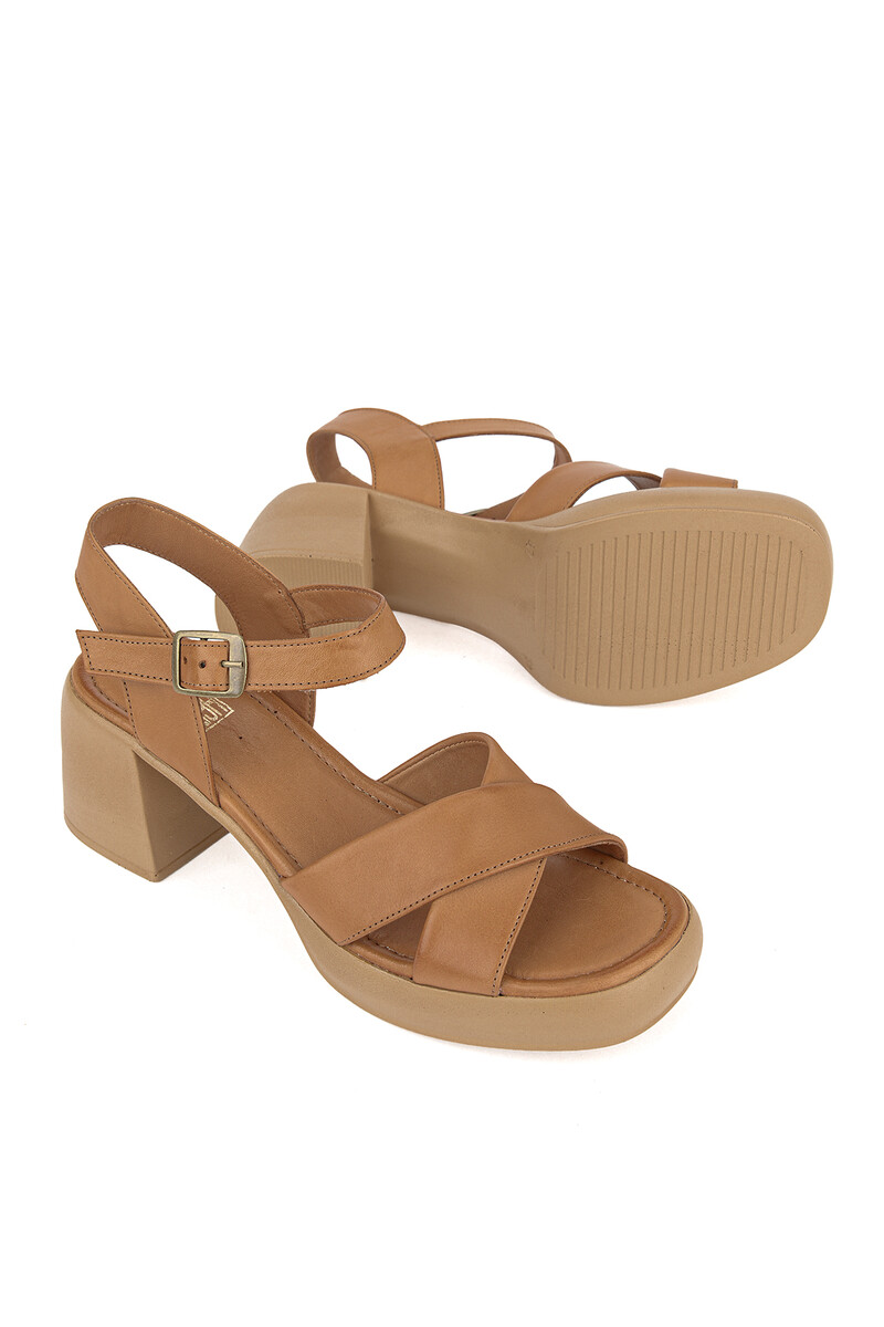 Hakiki Deri Kadın Sandalet Taba