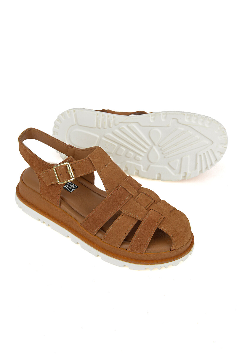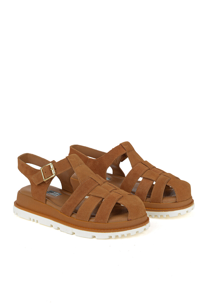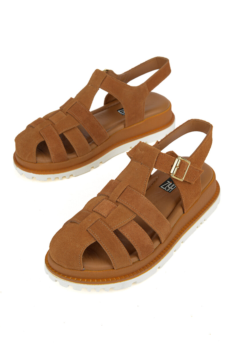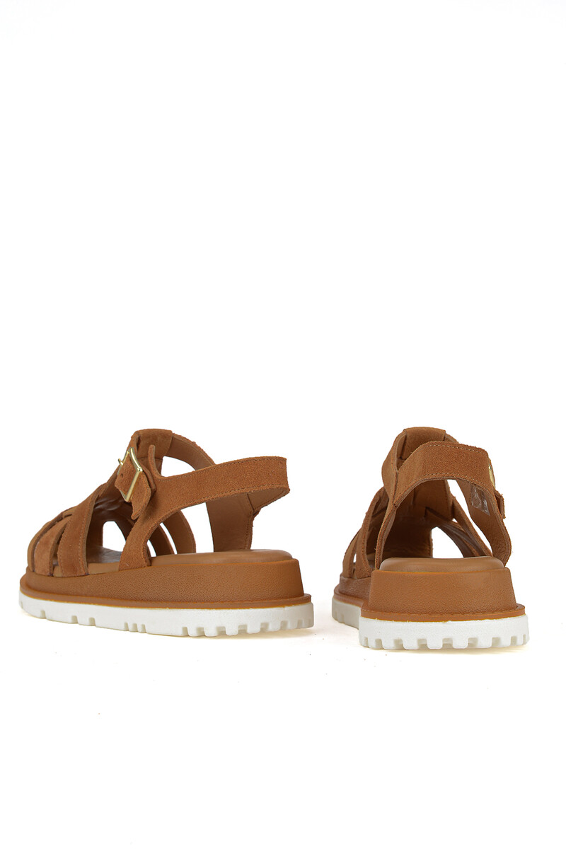 Hakiki Deri Kadın Sandalet Taba