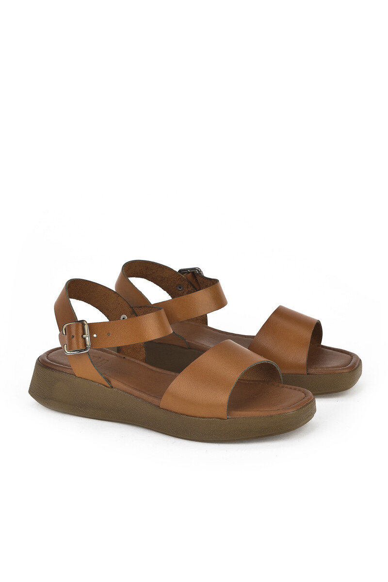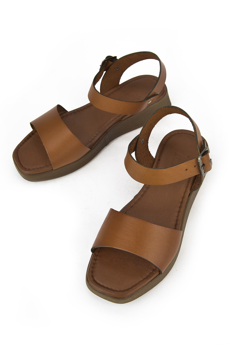 Hakiki Deri Kadın Sandalet Taba