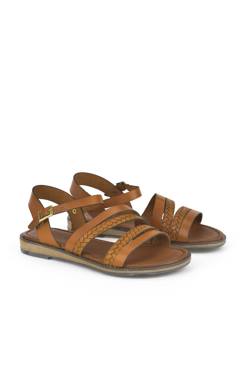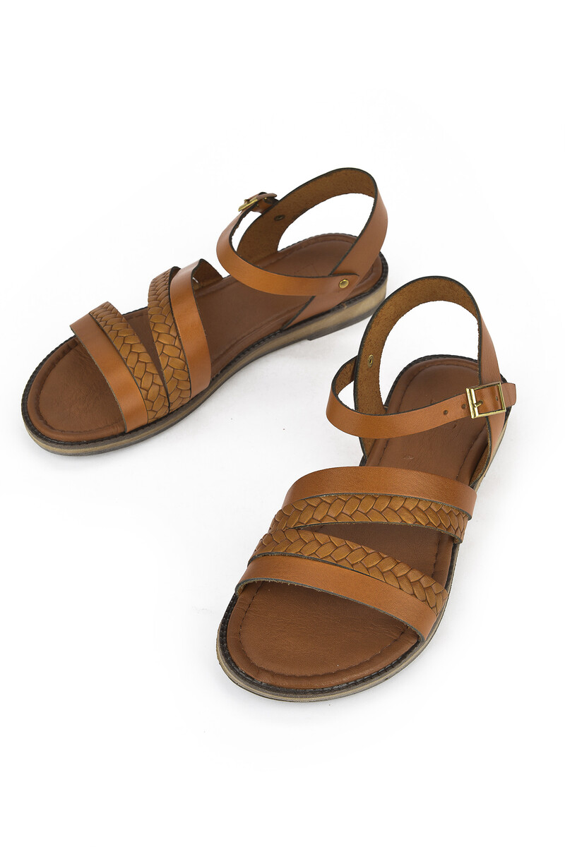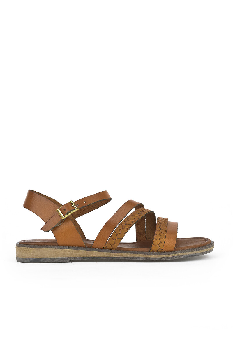 Hakiki Deri Kadın Sandalet Taba
