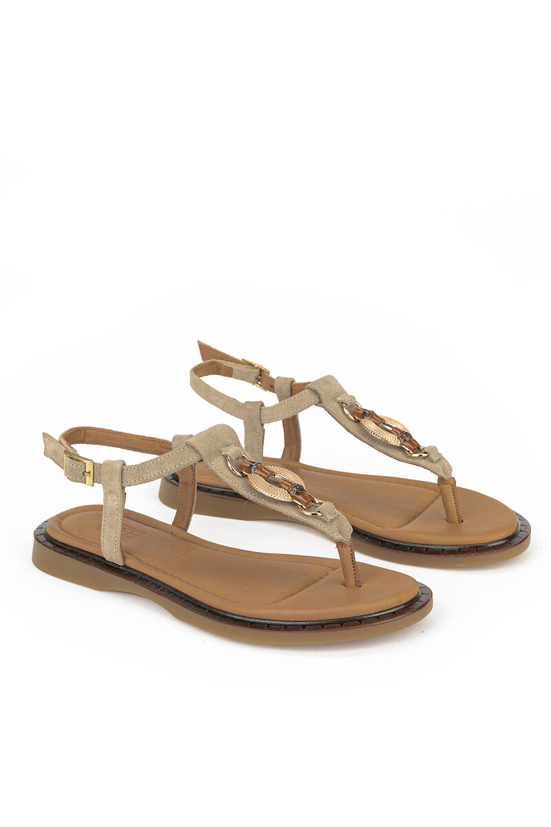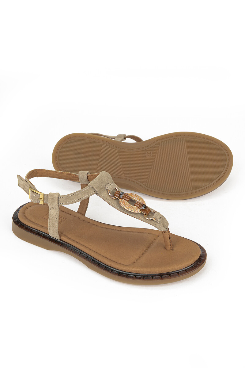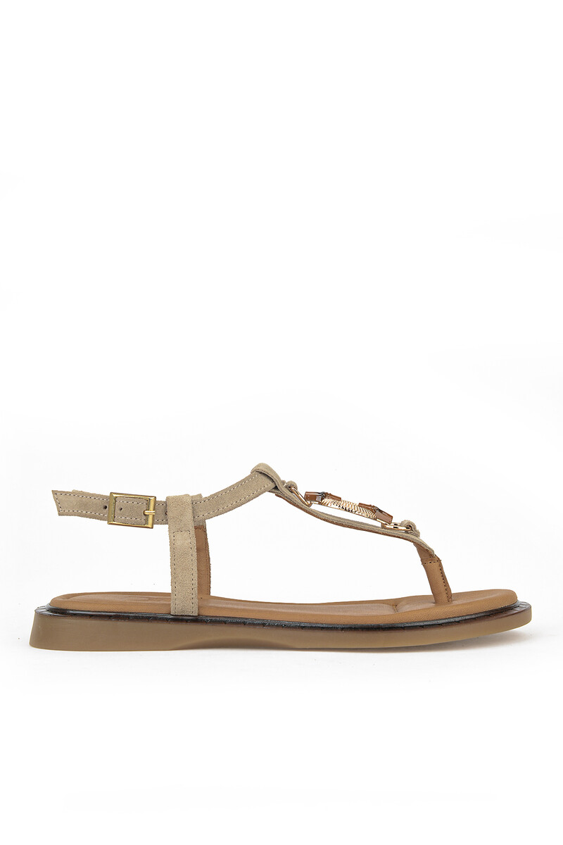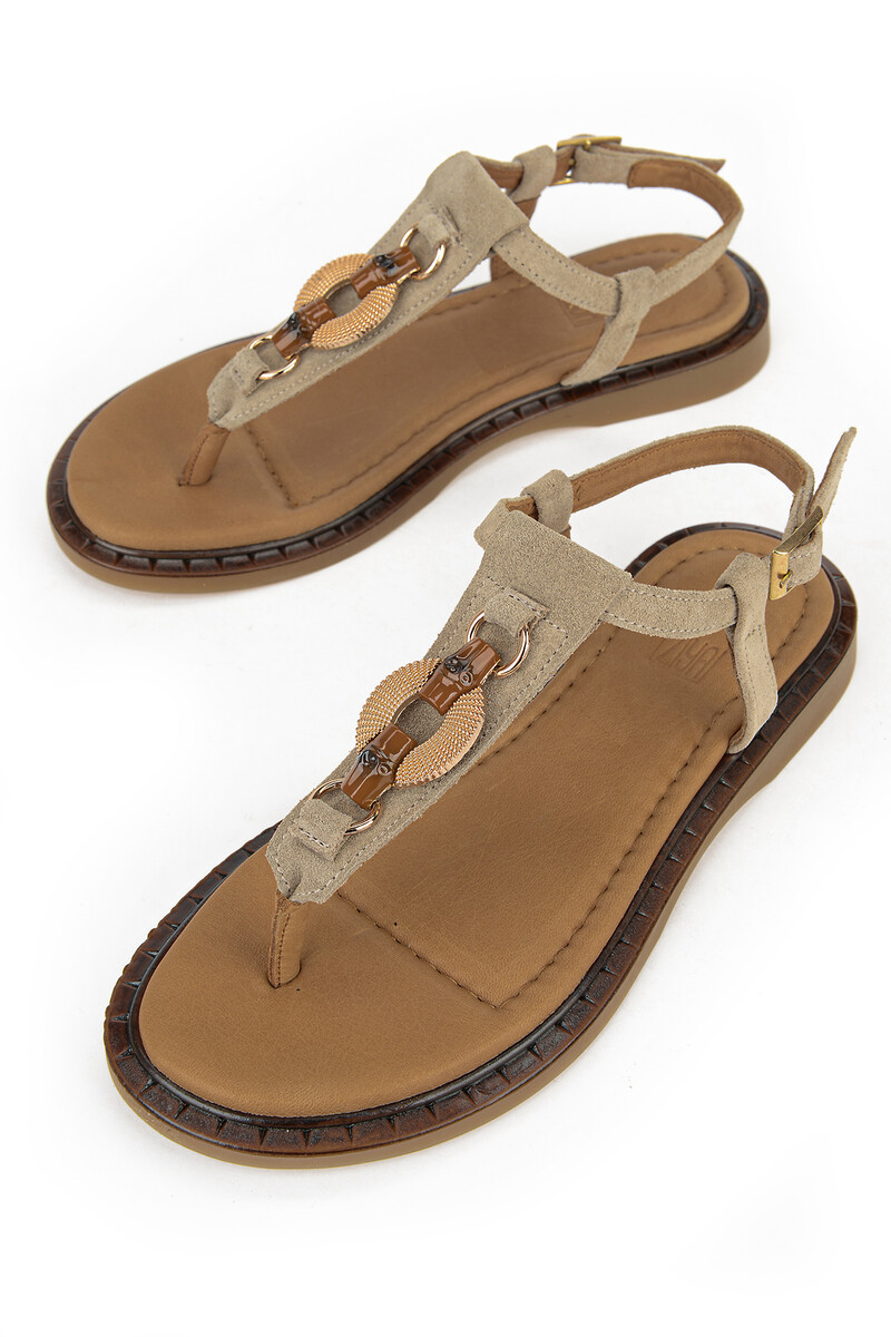 Hakiki Deri Kadın Sandalet Vizon
