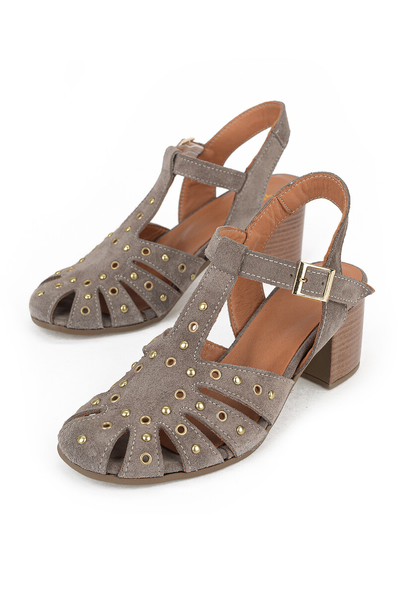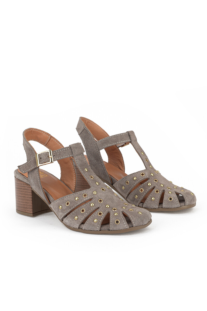 Hakiki Deri Kadın Sandalet Vizon