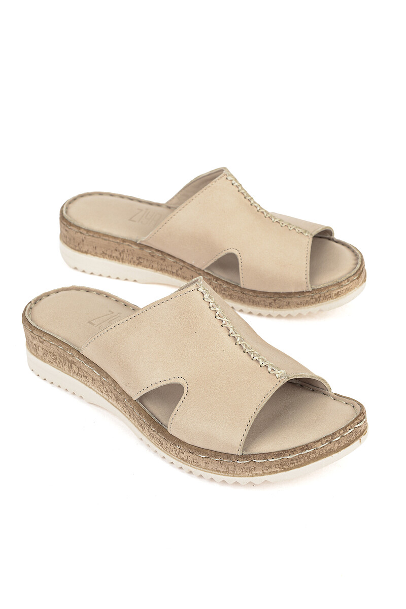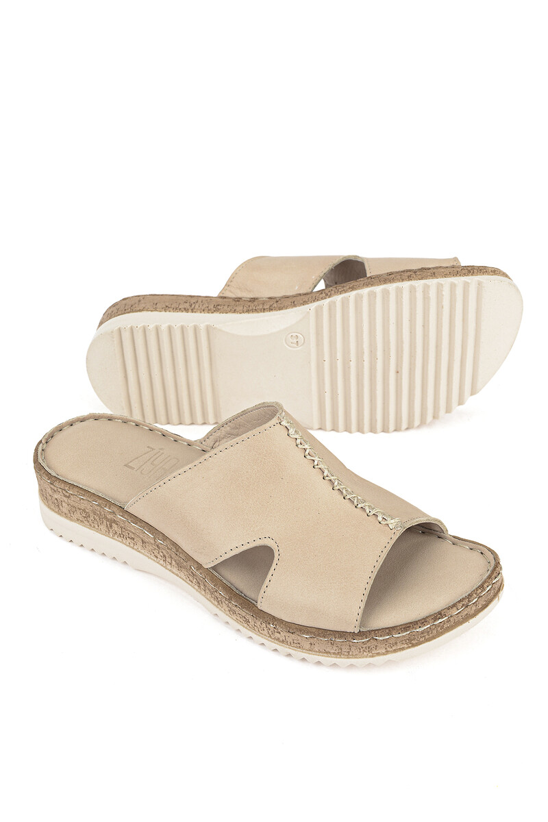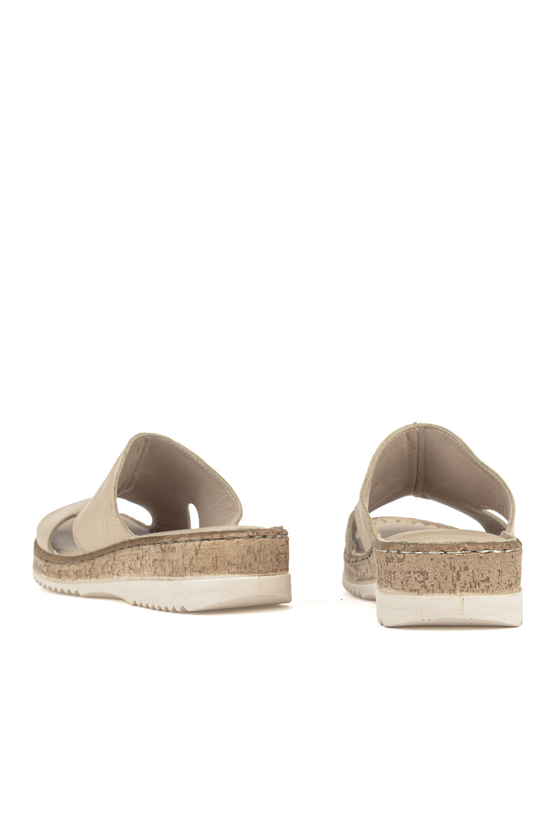 Hakiki Deri Kadın Terlik Bej