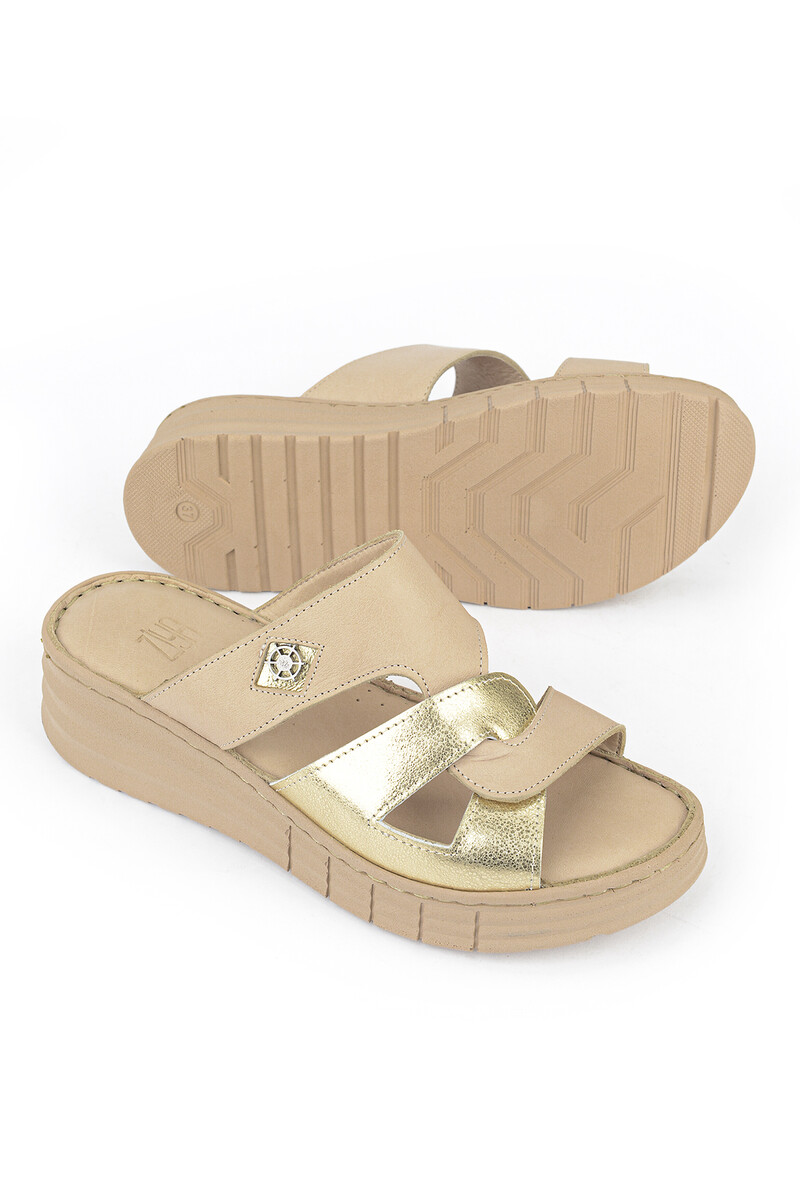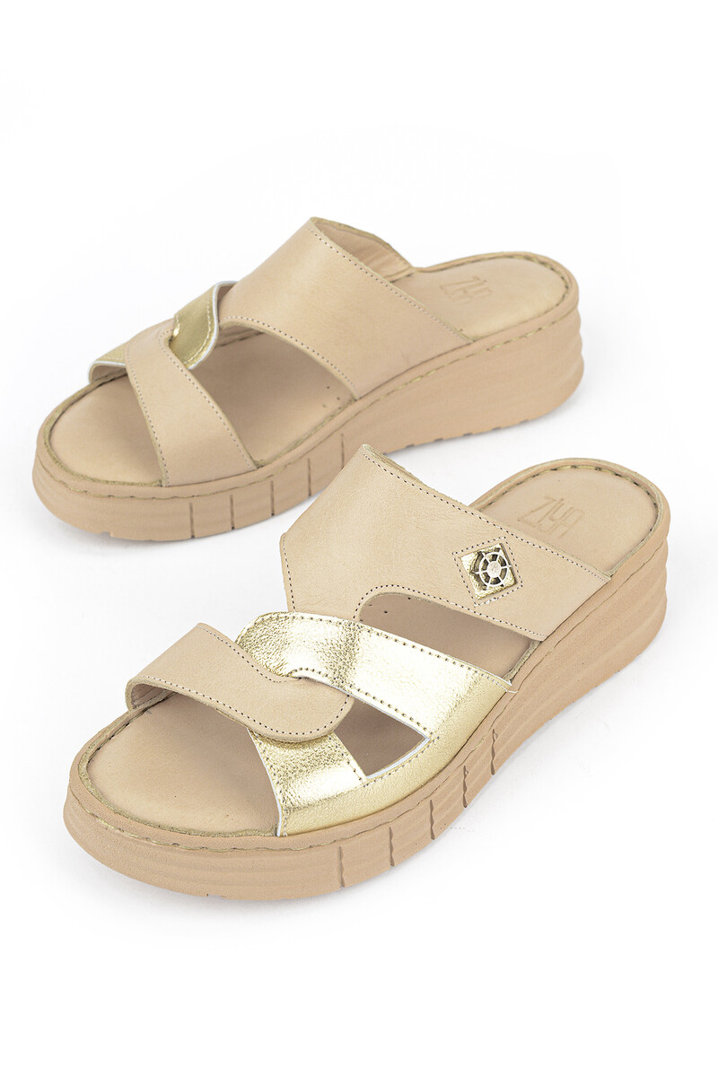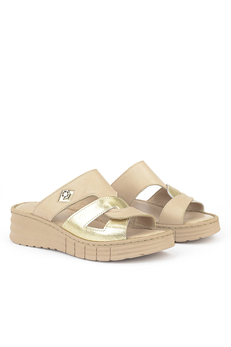 Hakiki Deri Kadın Terlik Bej