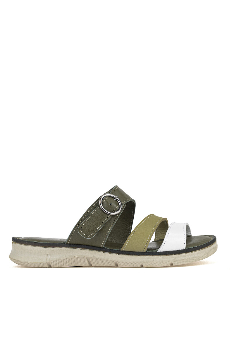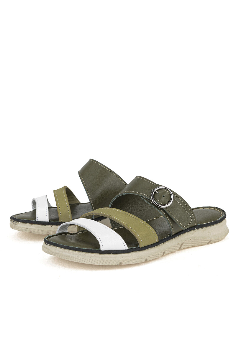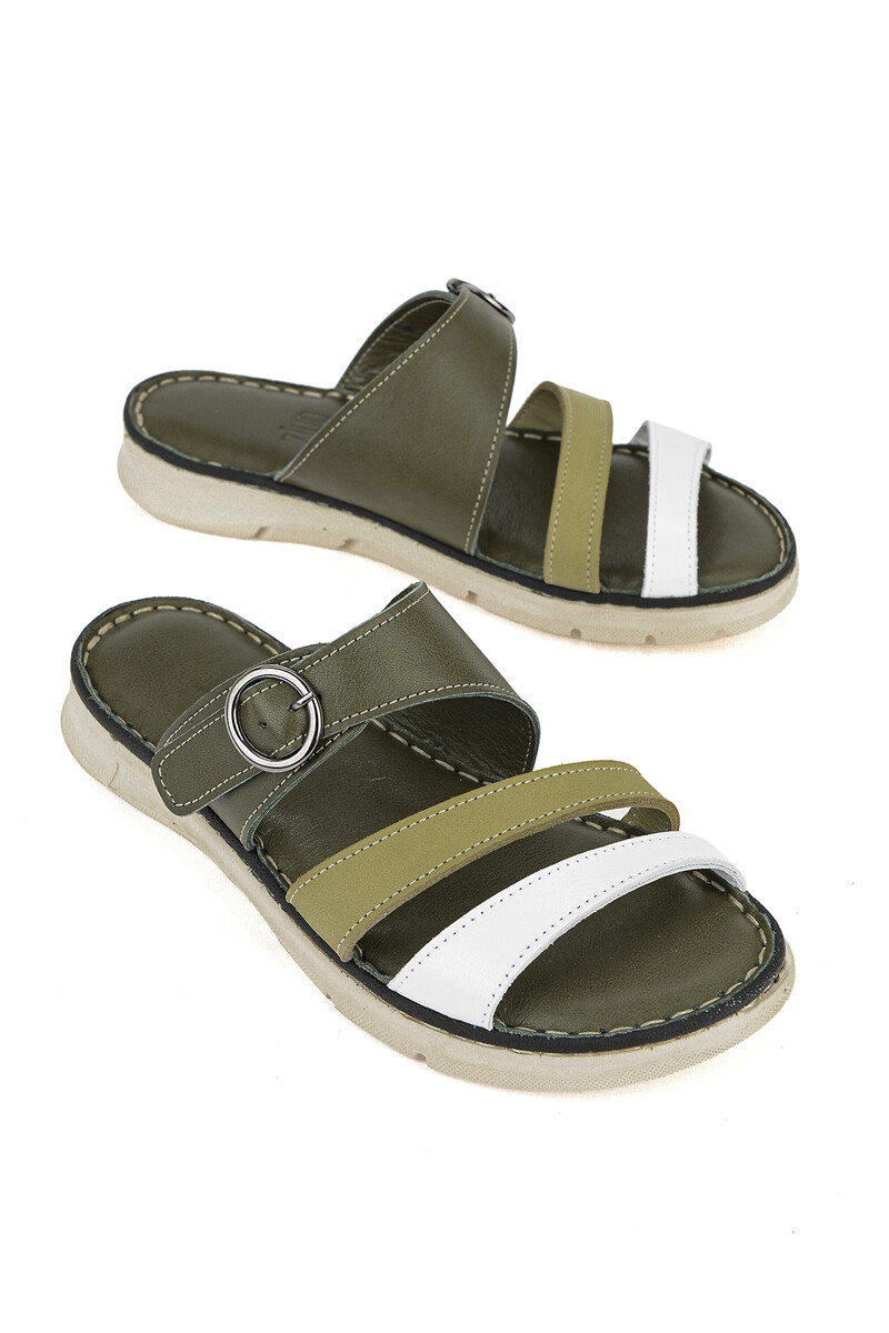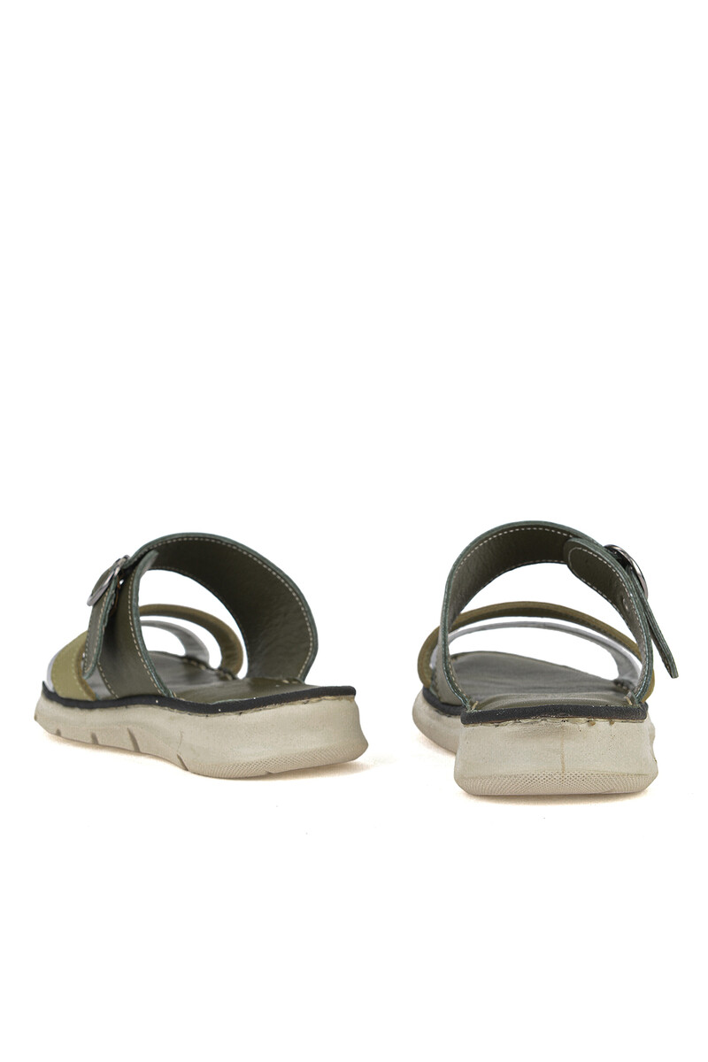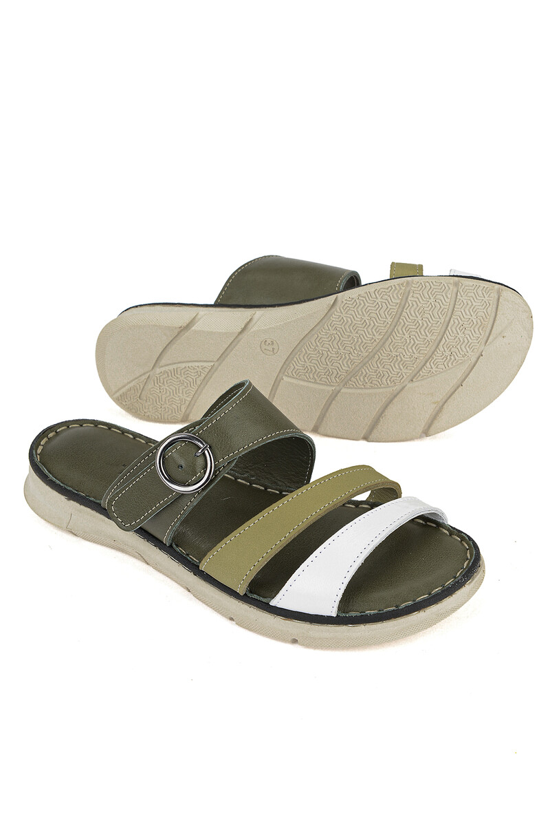 Hakiki Deri Kadın Terlik Haki