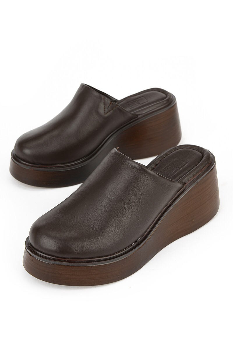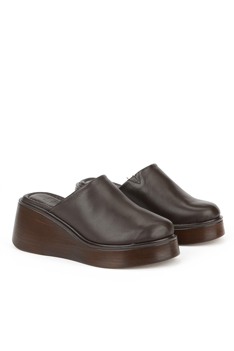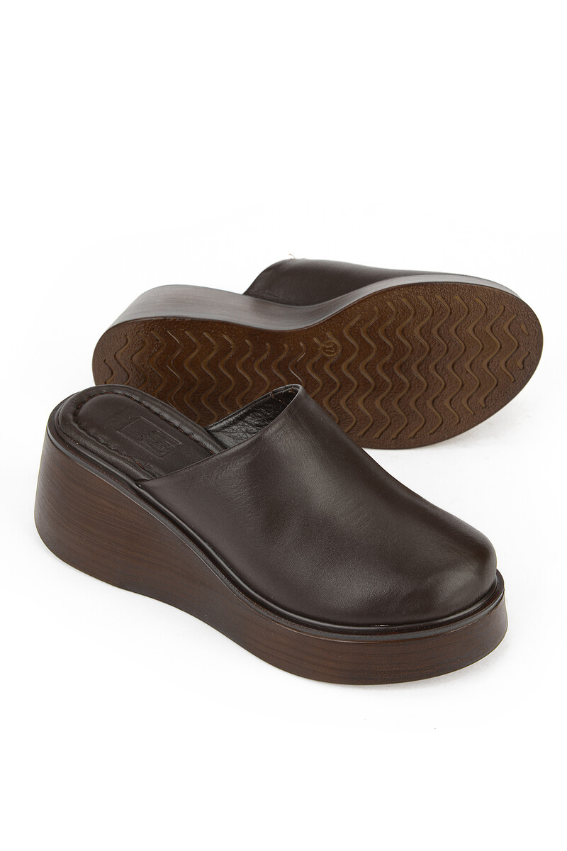 Hakiki Deri Kadın Terlik Kahverengi