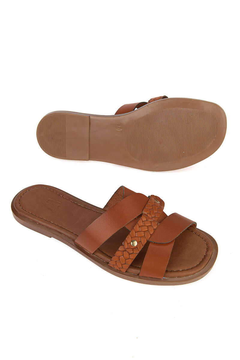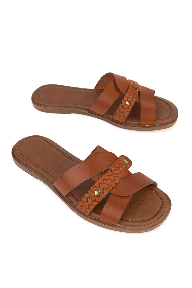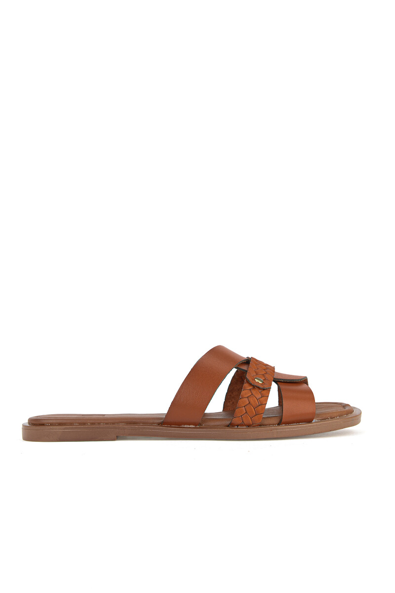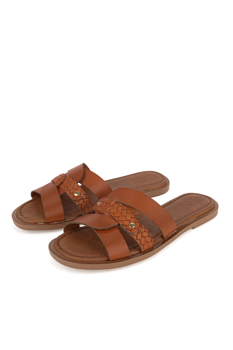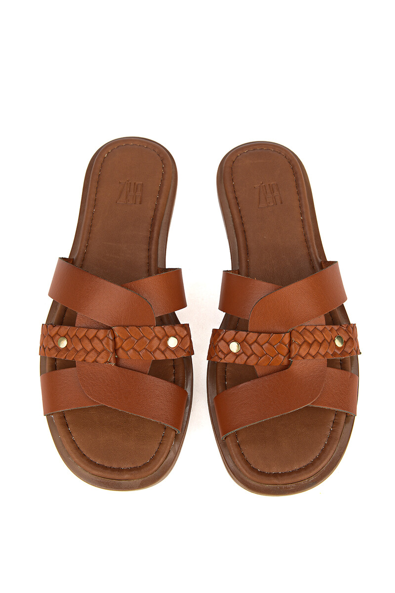 Hakiki Deri Kadın Terlik Turuncu
