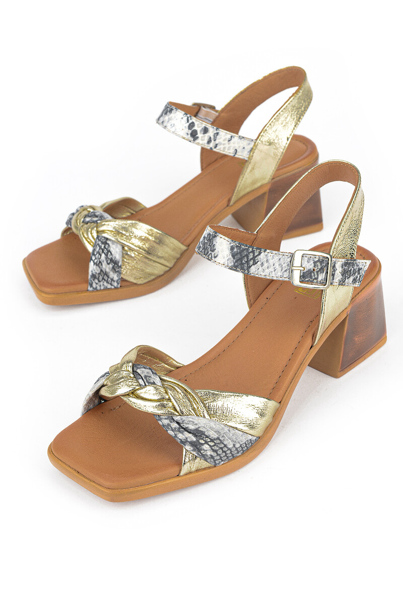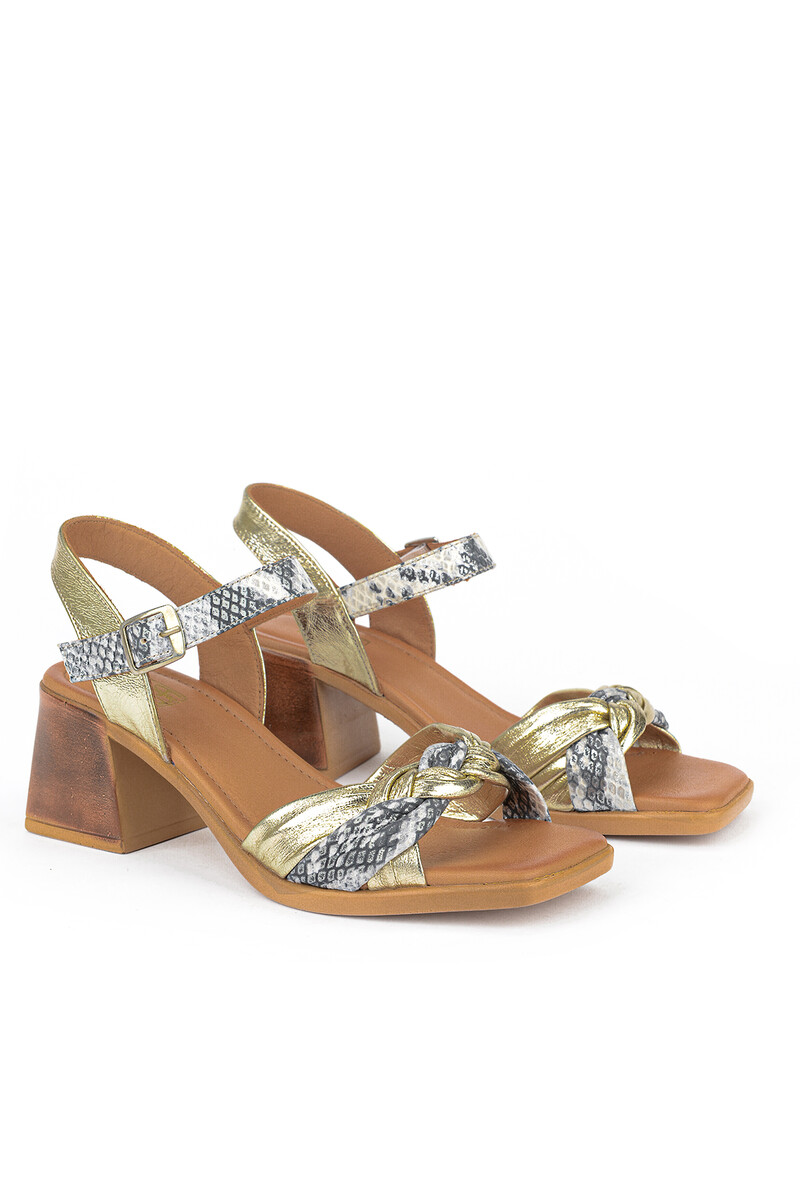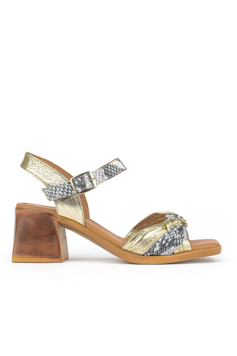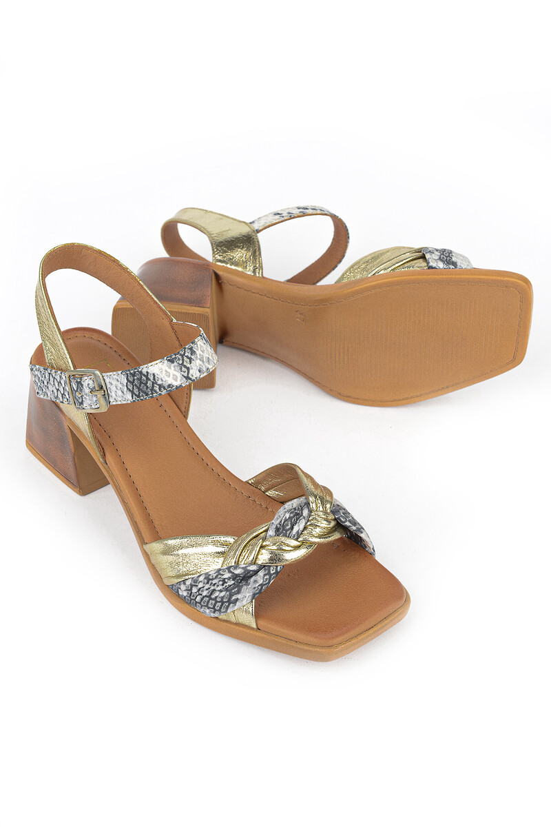 Hakiki Deri Kadın Topuklu Ayakkabı Altın