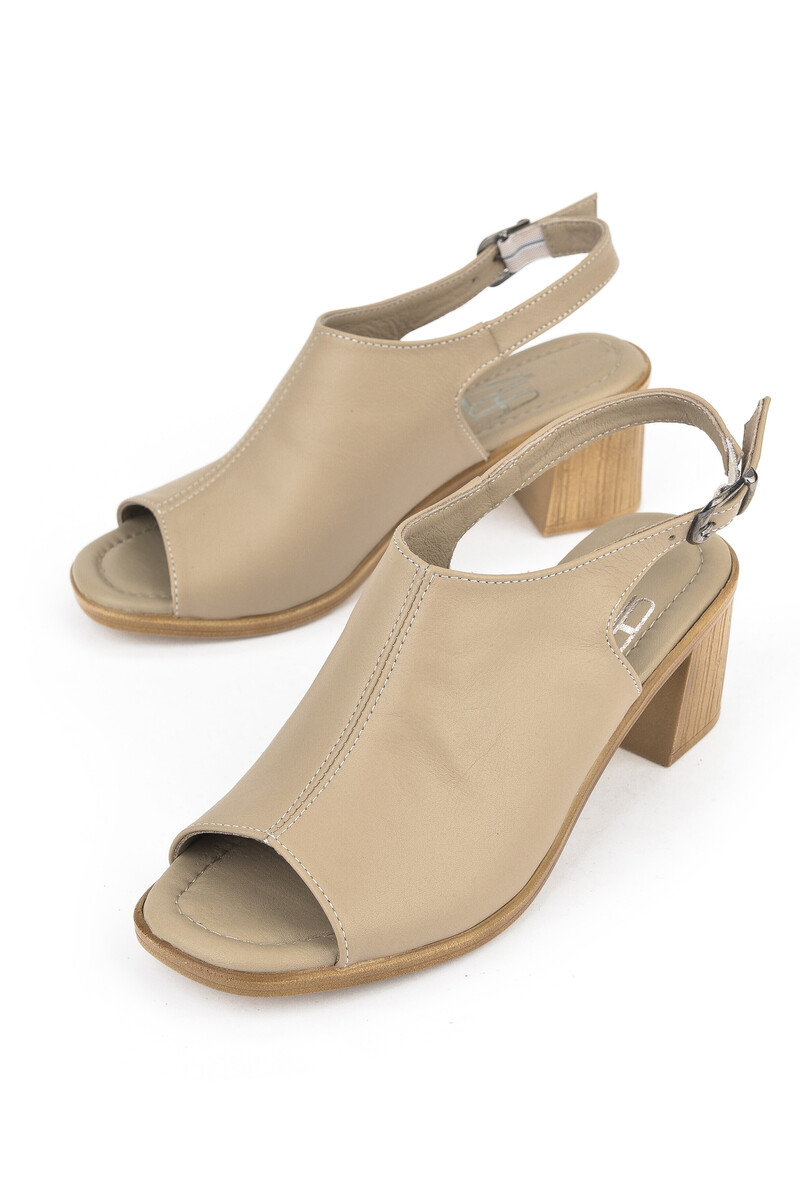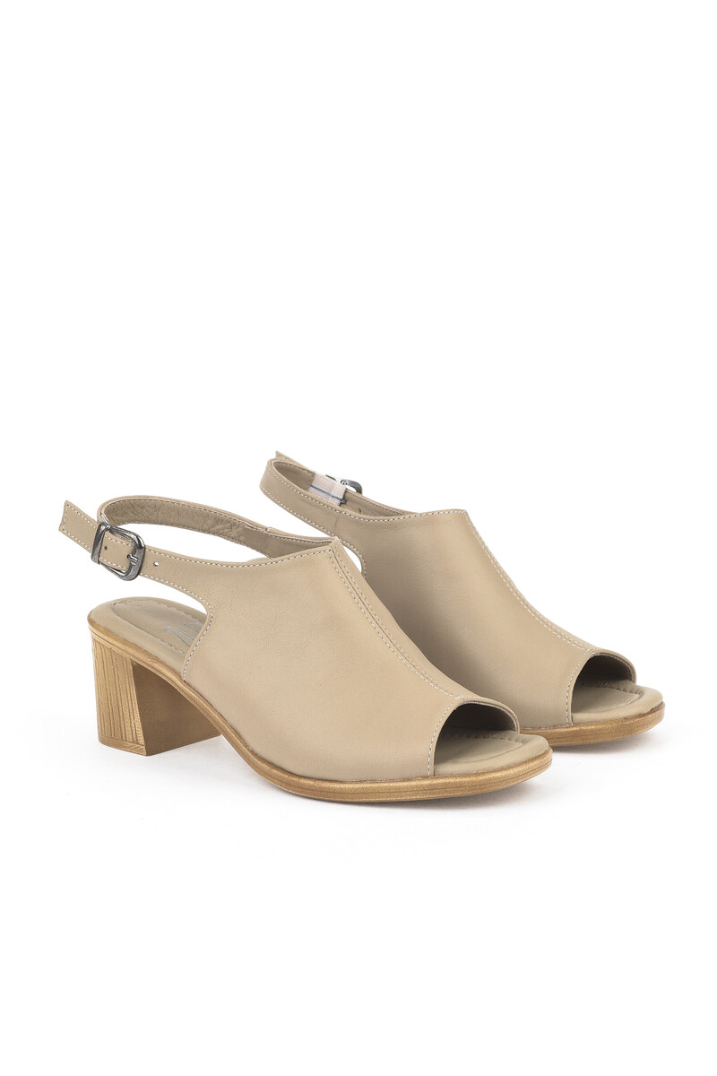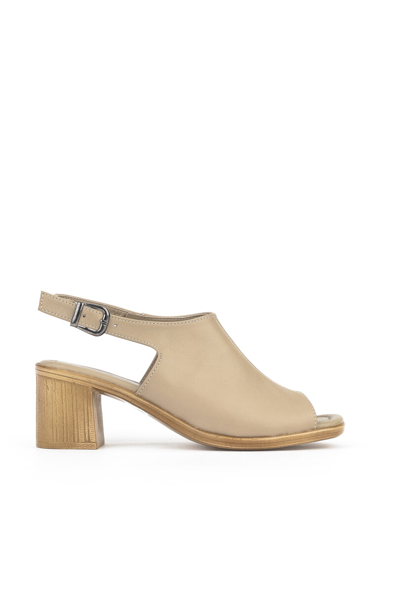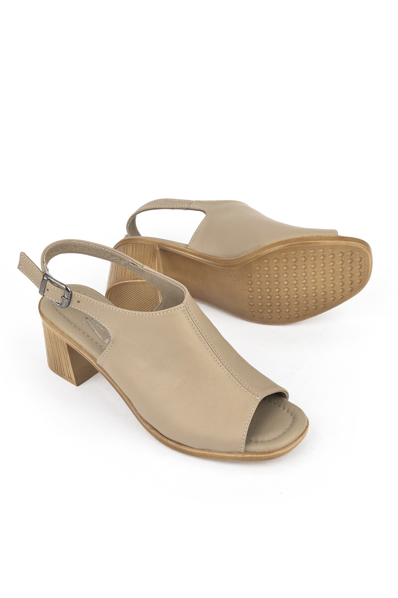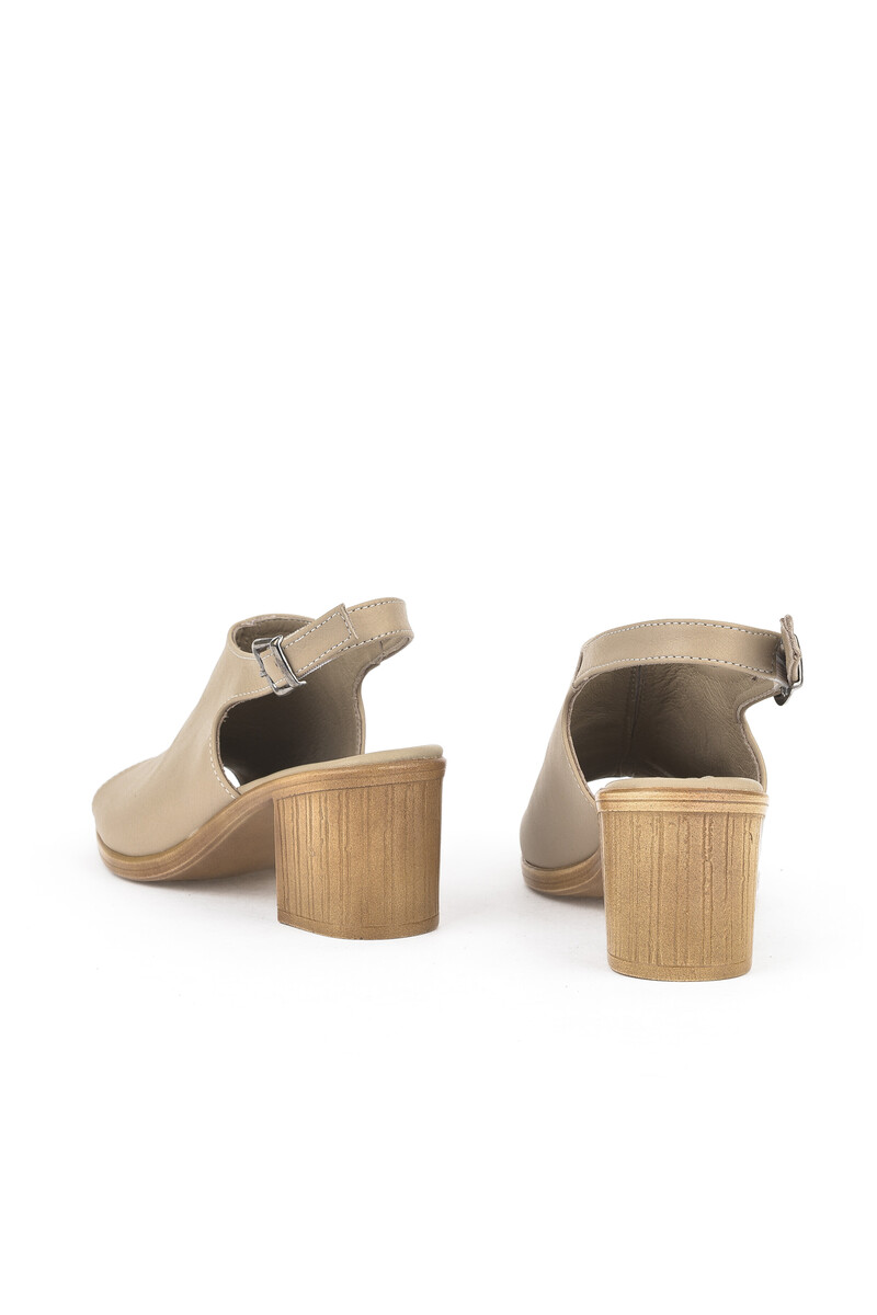 Hakiki Deri Kadın Topuklu Ayakkabı Bej