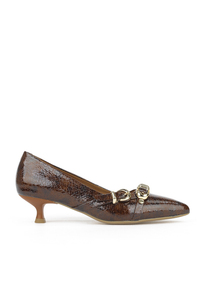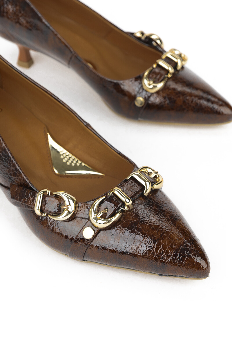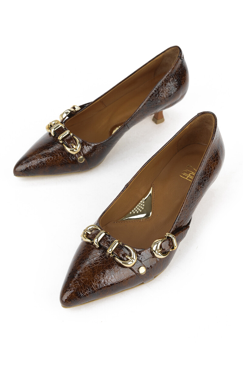Hakiki Deri Kadın Topuklu Ayakkabı Kahverengi