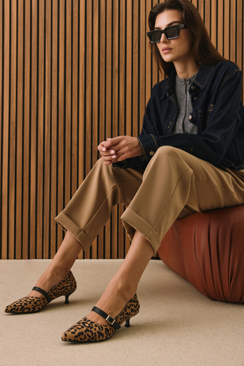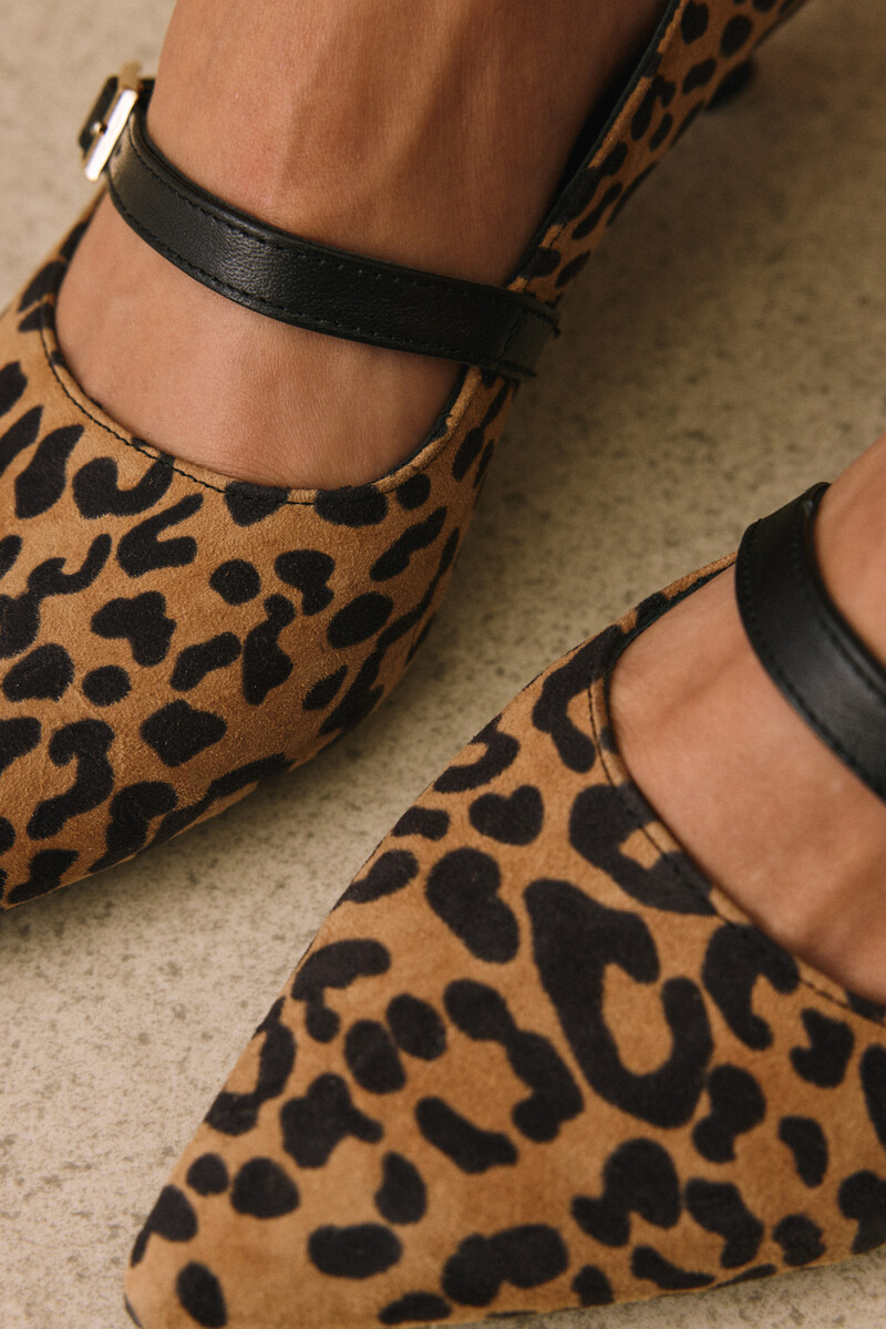 Hakiki Deri Kadın Topuklu Ayakkabı Leopar