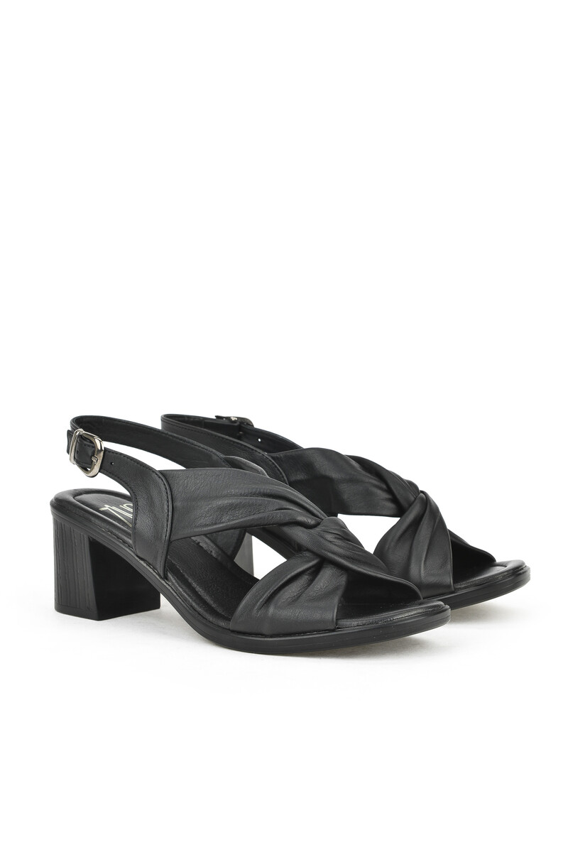 Hakiki Deri Kadın Topuklu Ayakkabı Siyah