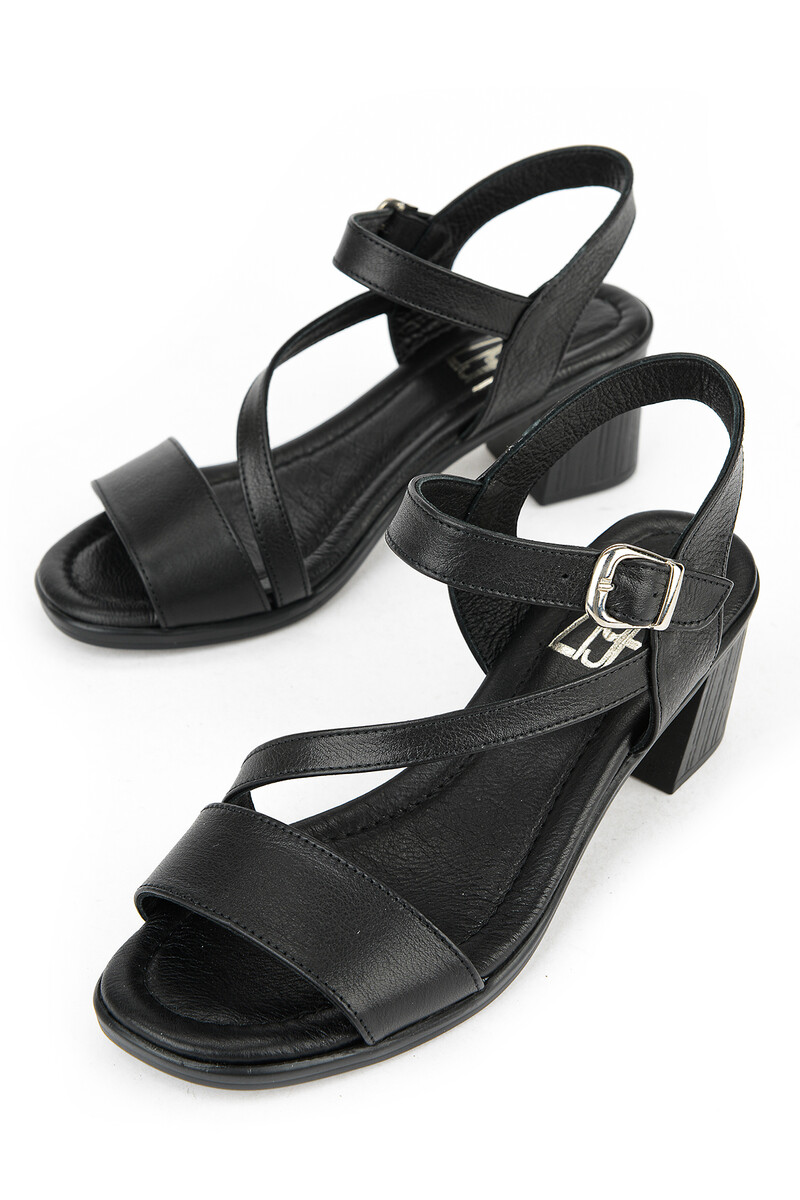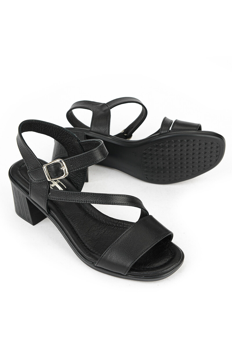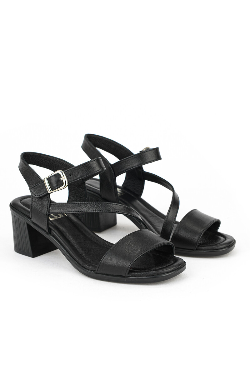 Hakiki Deri Kadın Topuklu Ayakkabı Siyah