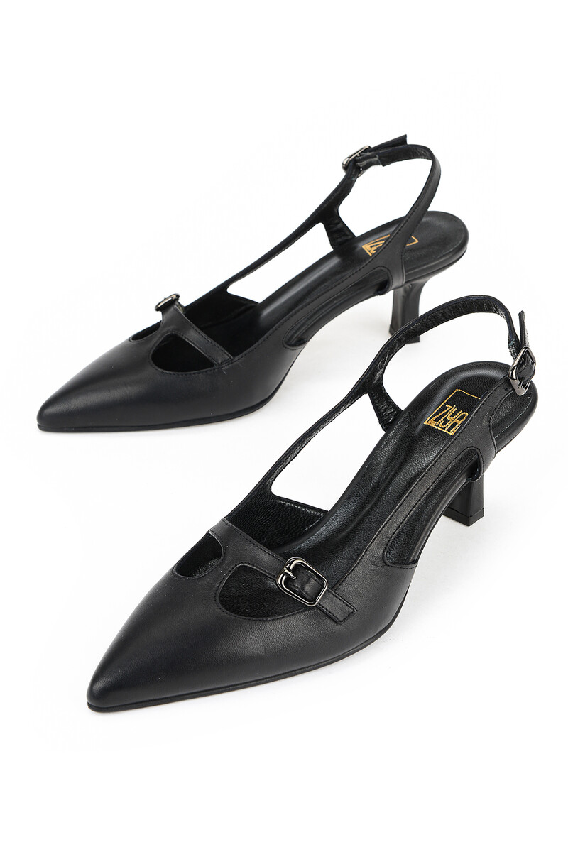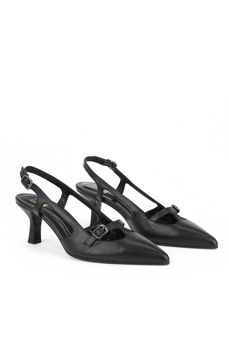 Hakiki Deri Kadın Topuklu Ayakkabı Siyah