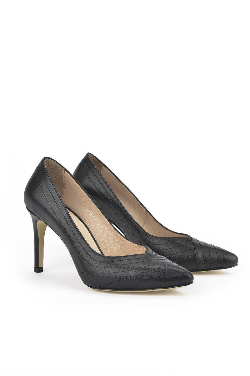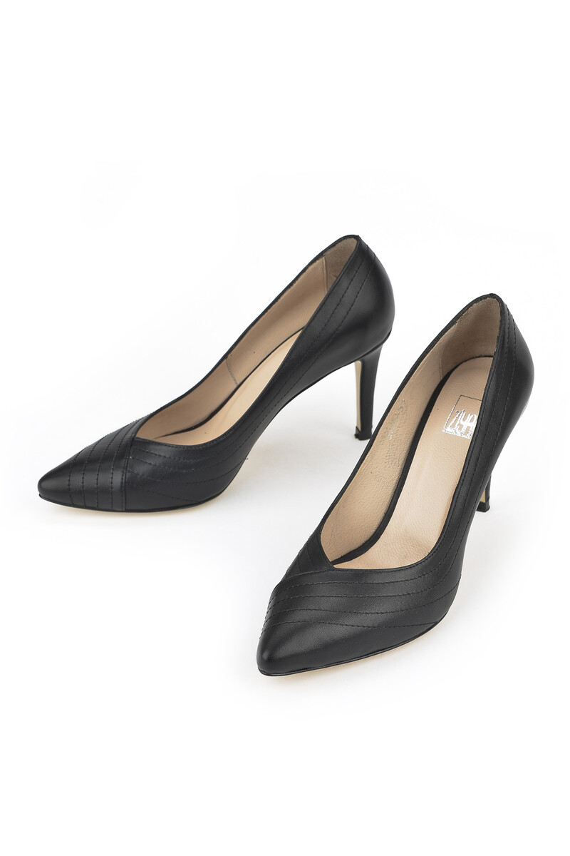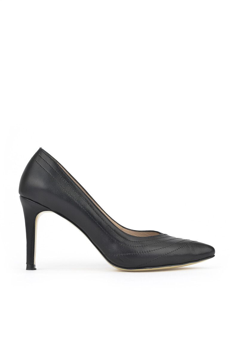 Hakiki Deri Kadın Topuklu Ayakkabı Siyah