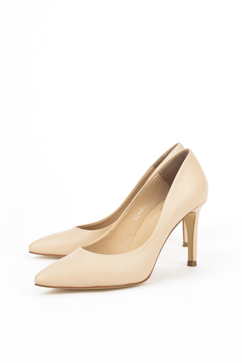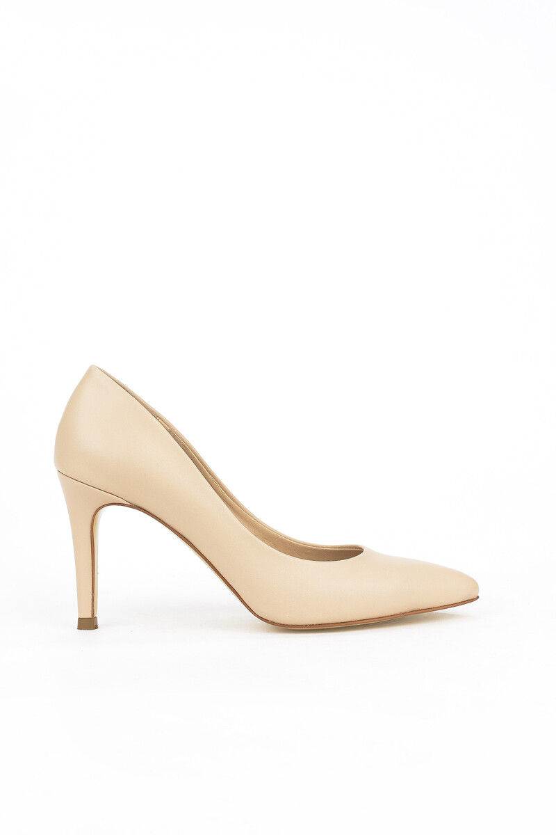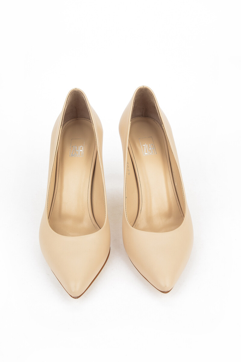 Hakiki Deri Kadın Topuklu Ayakkabı Ten